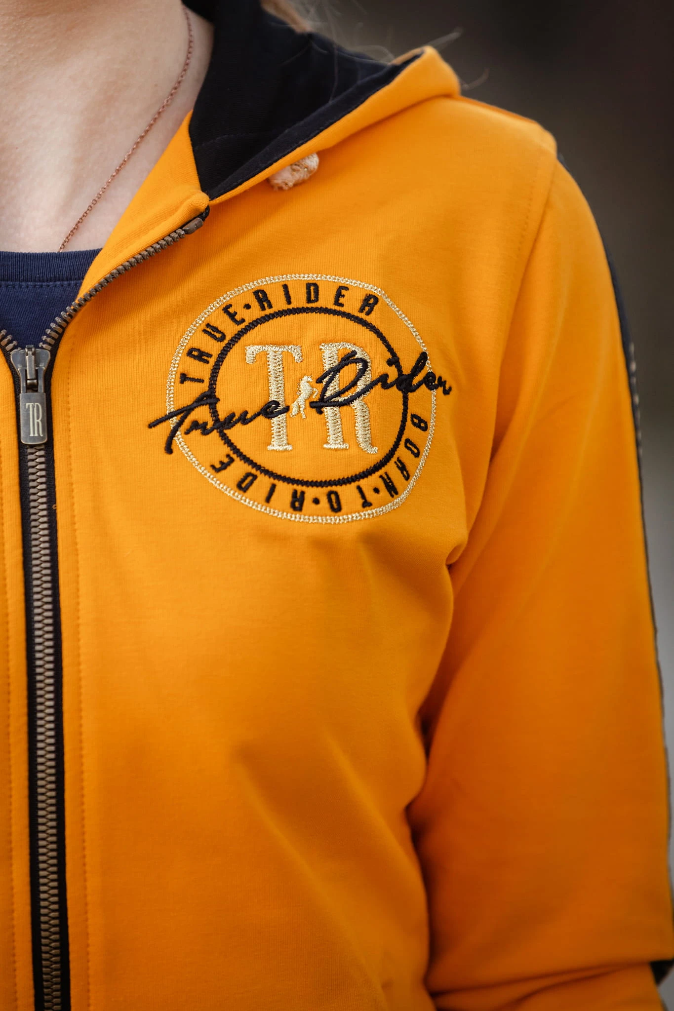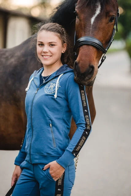 - Szeroki lampas na ramionach oraz kapturze nadaje całkiem nowego charakteru bluzie, która ze zwykłej jeździeckiej bluzy staje się bardziej eleganckim dodatkiem w stajni, ale również na co dzień.