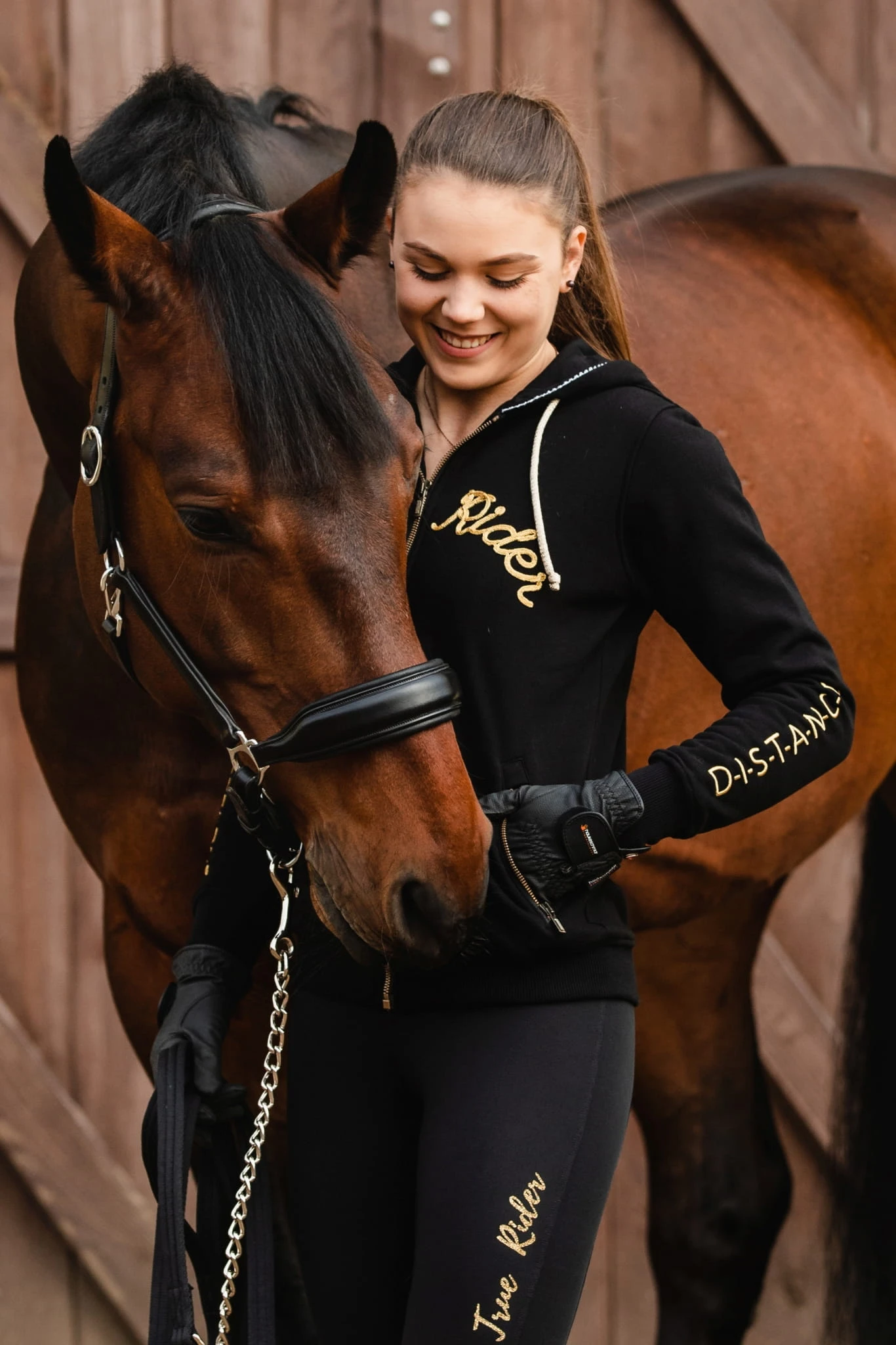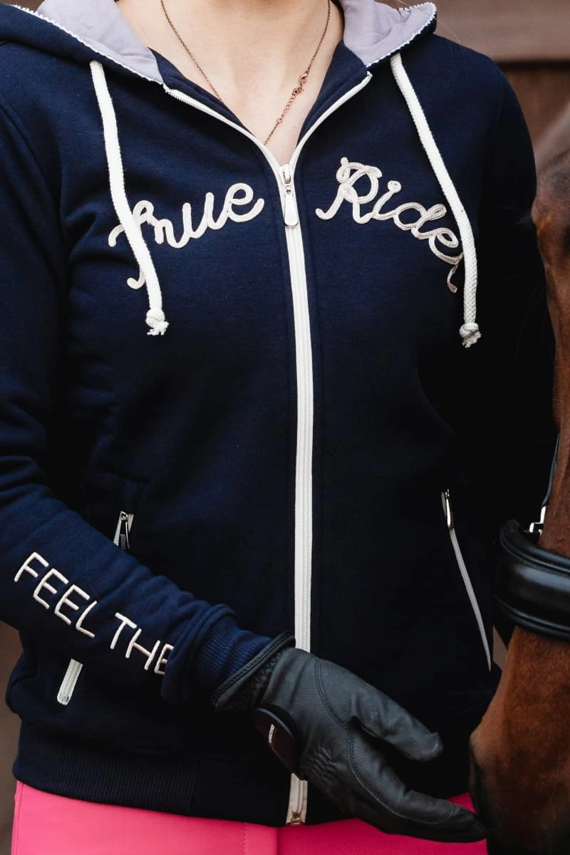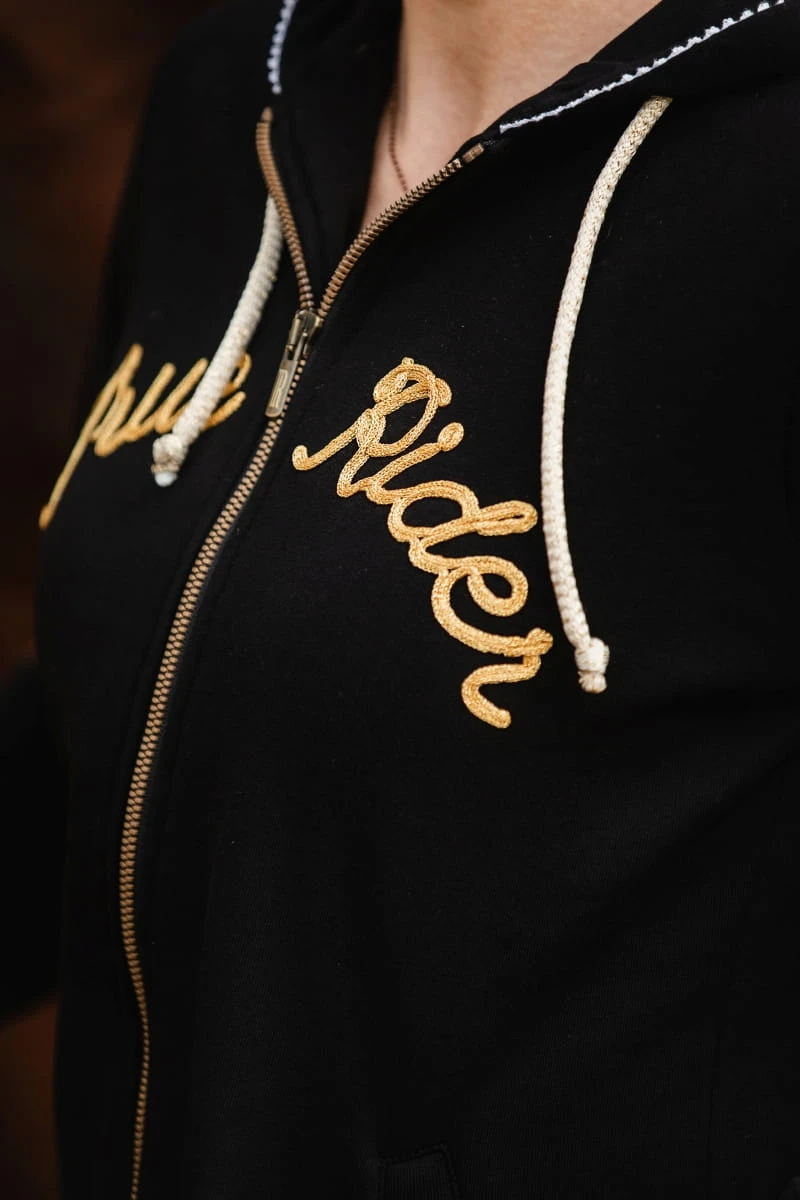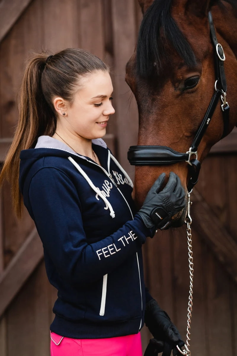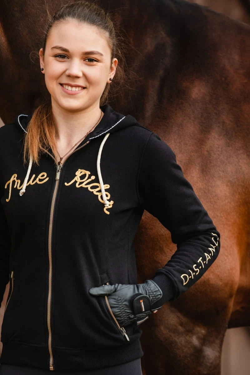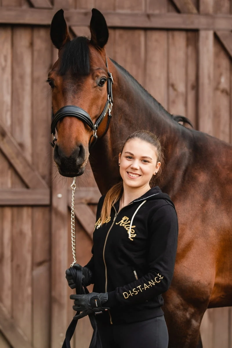 - Bluza w kolorze czarnym idealnie pasuje do całej kolekcji Black & Gold, gdzie znajdziesz m.in.: legginsy, koszulkę treningową, kamizelkę dla siebie, a także czaprak, nauszniki i derkę dla swojego wierzchowca!