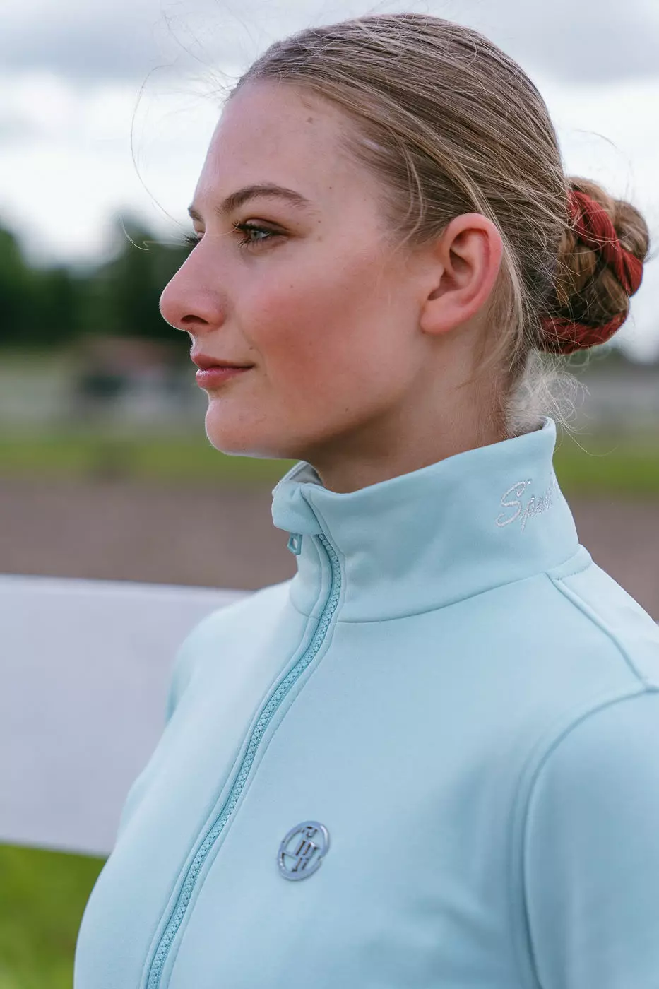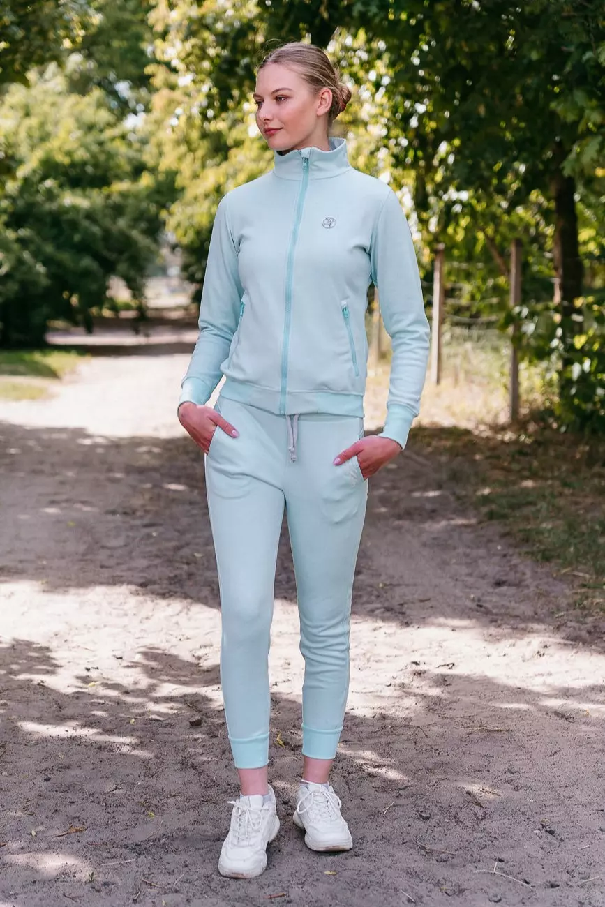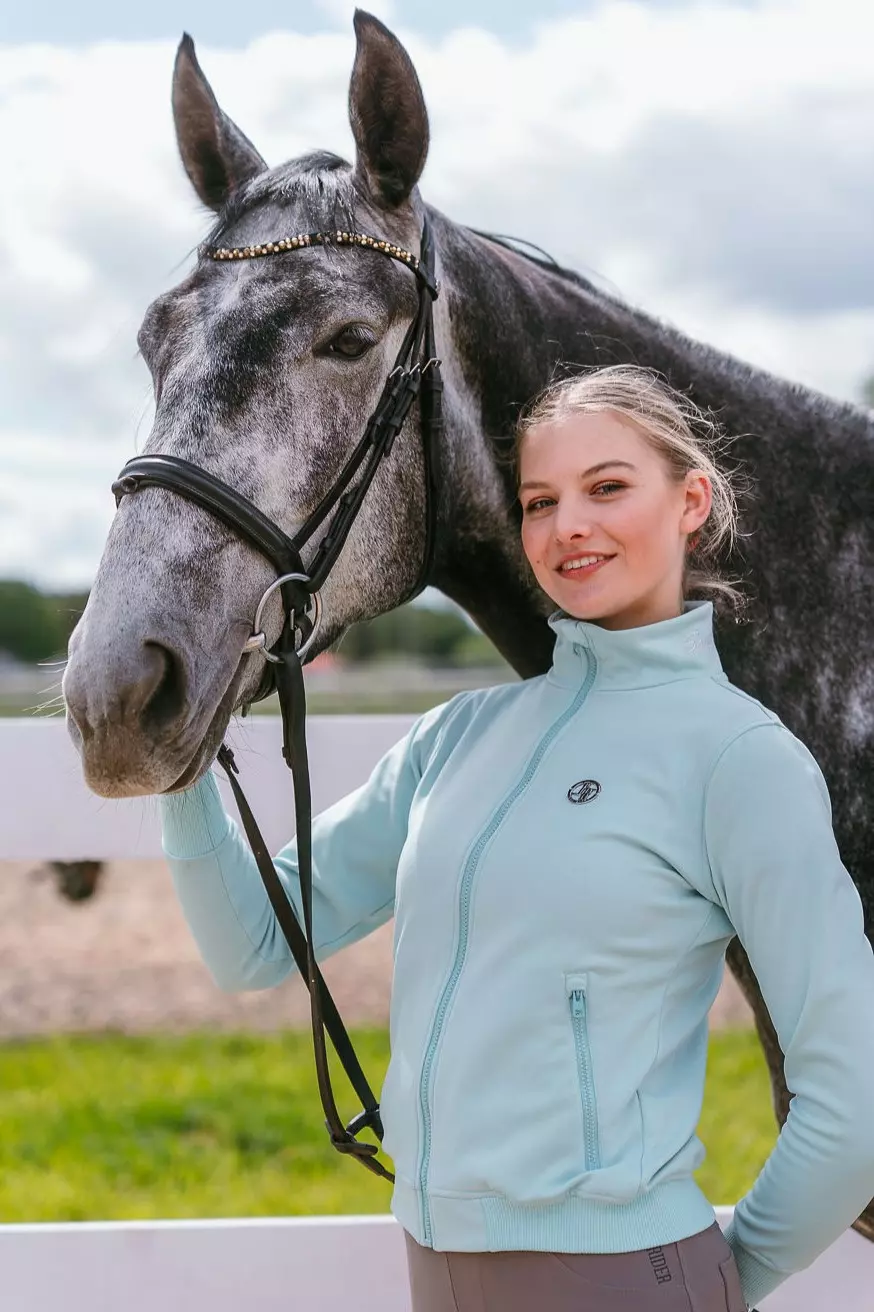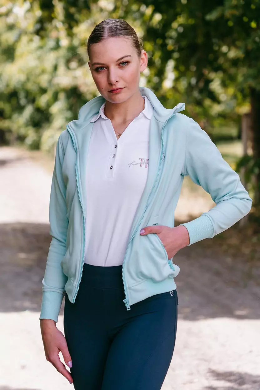 Bluza True Rider Just Chill w kolorze Fresh Mint to doskonałe połączenie wygody i nowoczesnego designu. Techniczny materiał odporny na zabrudzenia i łatwy w czyszczeniu sprawia, że świetnie sprawdzi się w każdych warunkach – w stajni, na treningu, czy w czasie wolnym.