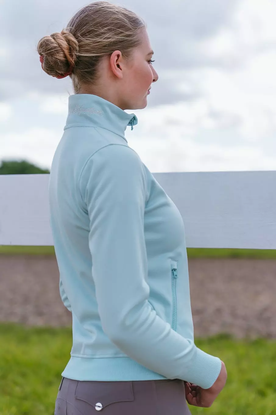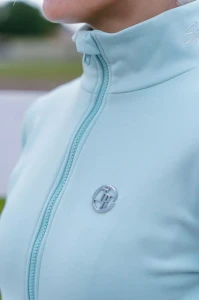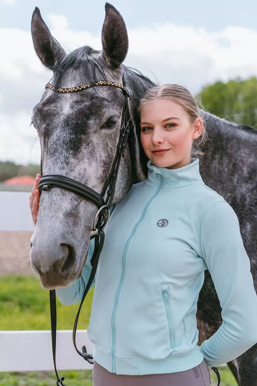 Bluza True Rider Just Chill w kolorze Fresh Mint to doskonałe połączenie wygody i nowoczesnego designu. Techniczny materiał odporny na zabrudzenia i łatwy w czyszczeniu sprawia, że świetnie sprawdzi się w każdych warunkach – w stajni, na treningu, czy w czasie wolnym.