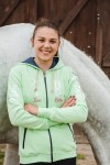 - Tym razem do ściągacza dodaliśmy mocującą materiałową wstawkę – dzięki temu bluza jeszcze lepiej się układa, nie podwija do góry i nadaje kobiecych kształtów