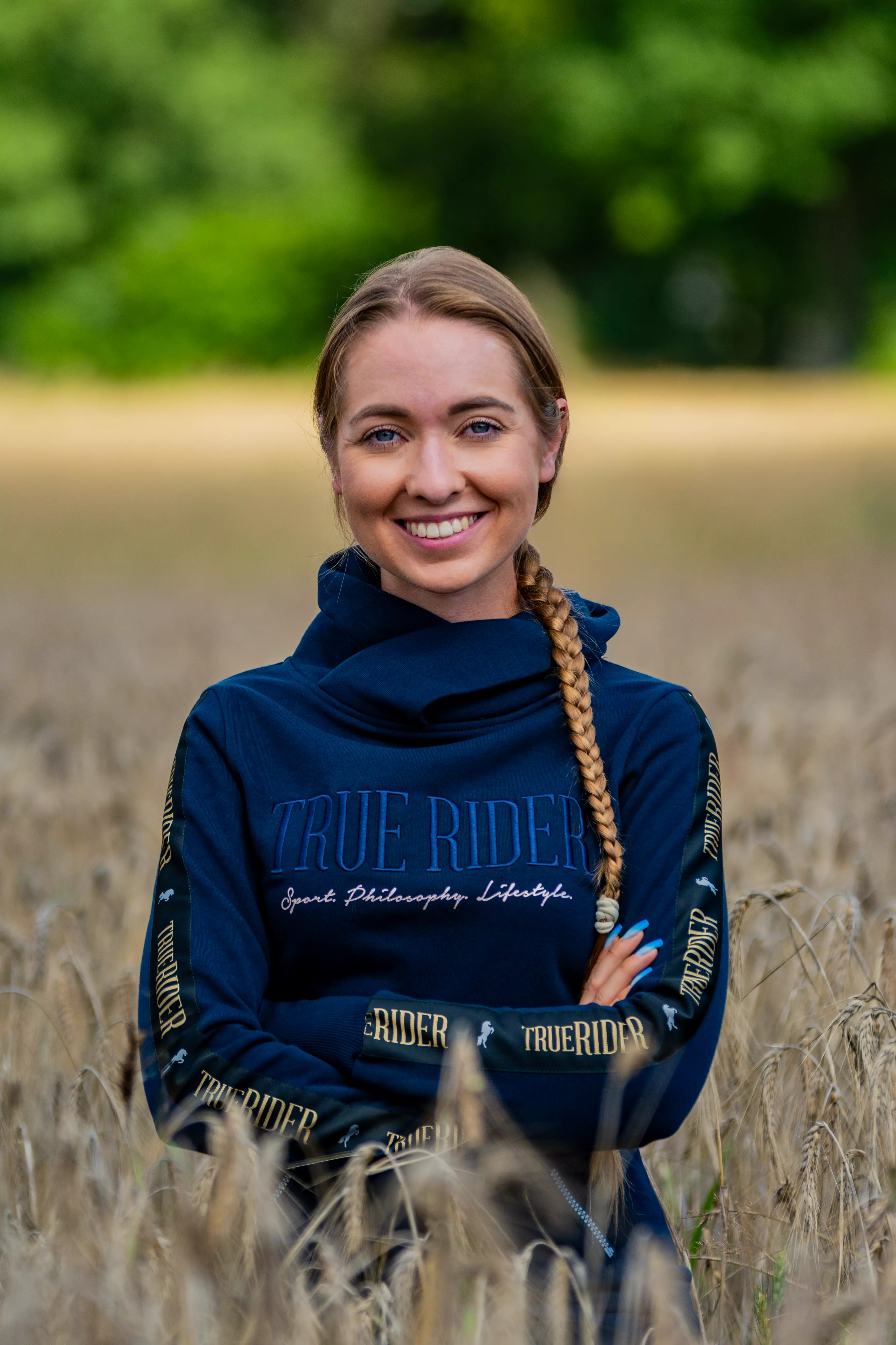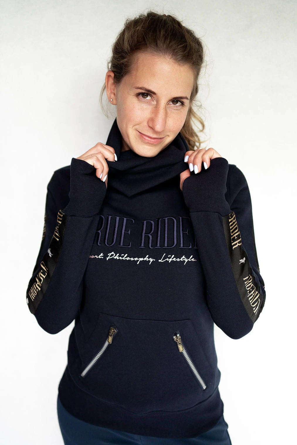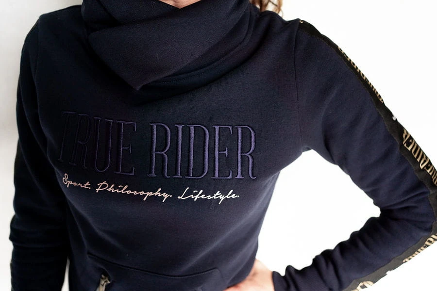 - Na piersi bluzy True Rider Komma subtelny haft 3D w kolorze bluzy z mottem wszystkich True Riders -Sport Philosophy. Lifestyle.