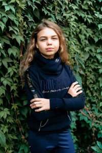 - Ozdobny lampas – subtelny, a jednak widoczny ;) Nadaje całkiem nowego charakteru bluzie, która ze zwykłej jeździeckiej bluzy staje się bardziej eleganckim dodatkiem w stajni, ale również na co dzień.
