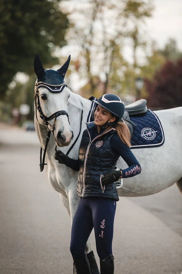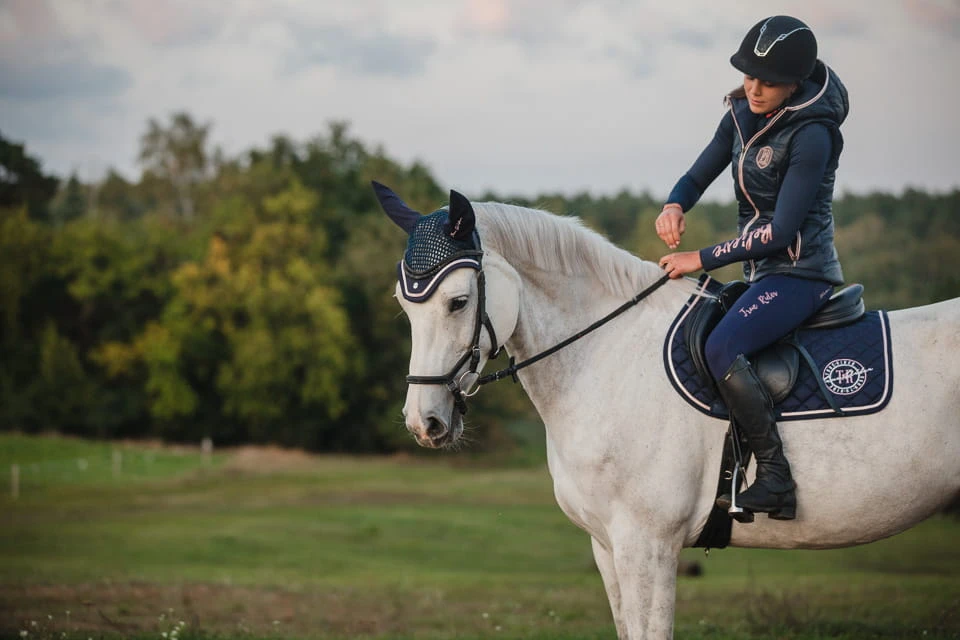 Tradycyjny granat pasujący do każdej maści naszych podopiecznych. Cudowne połączenie granatu z kontrastową, skórką w kolorze Rose Gold – elegancja w każdym calu dla jeźdźców, którzy lubią ponadczasową klasykę.