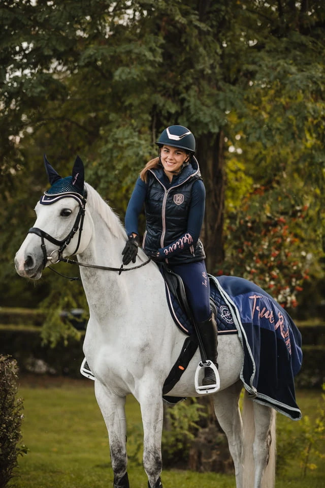 - Tradycyjny granat pasujący do każdej maści naszych podopiecznych. Cudowne połączenie granatu z kontrastową, skórką w kolorze Rose Gold – elegancja w każdym calu dla jeźdźców, którzy lubią ponadczasową klasykę.