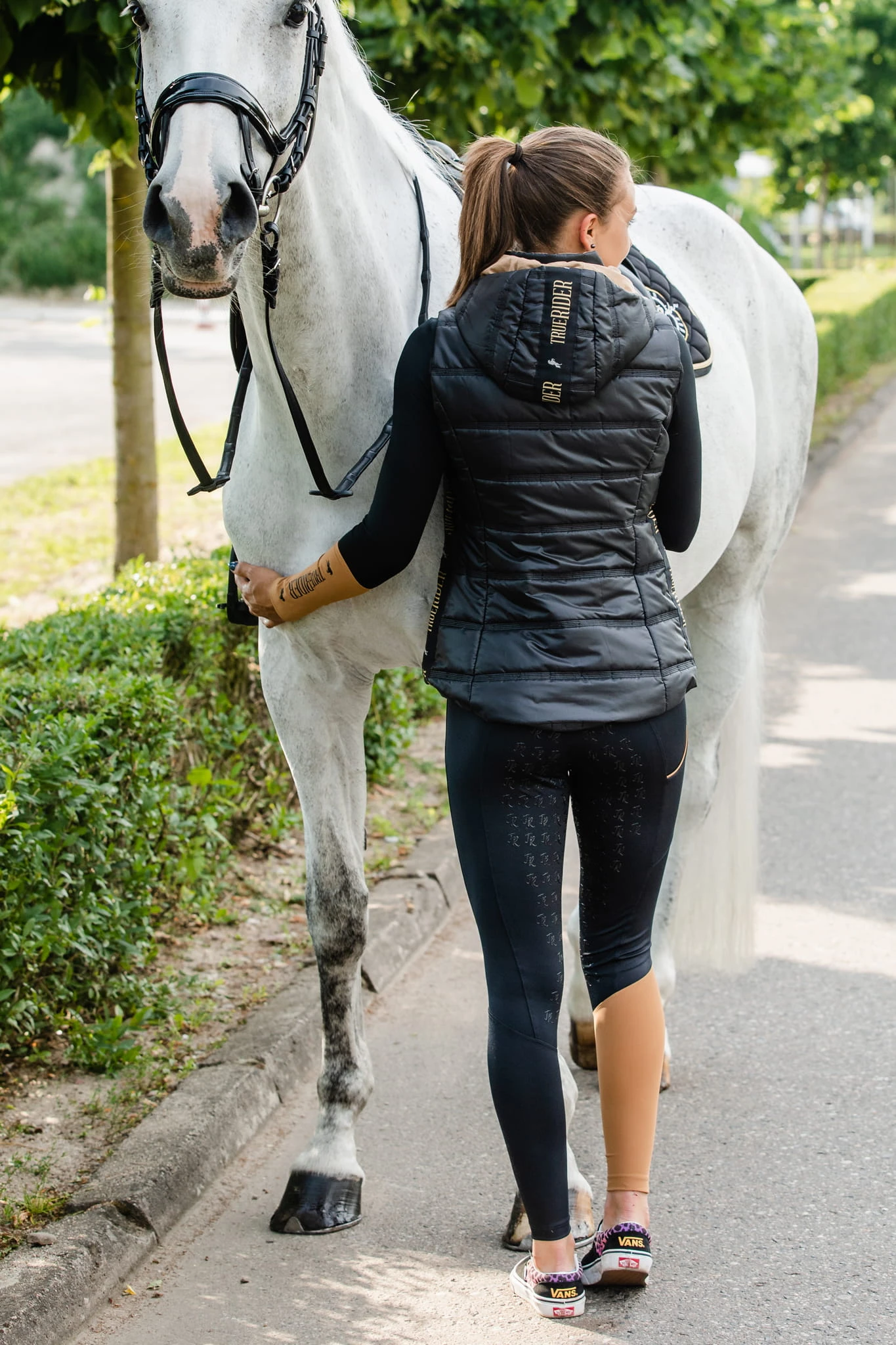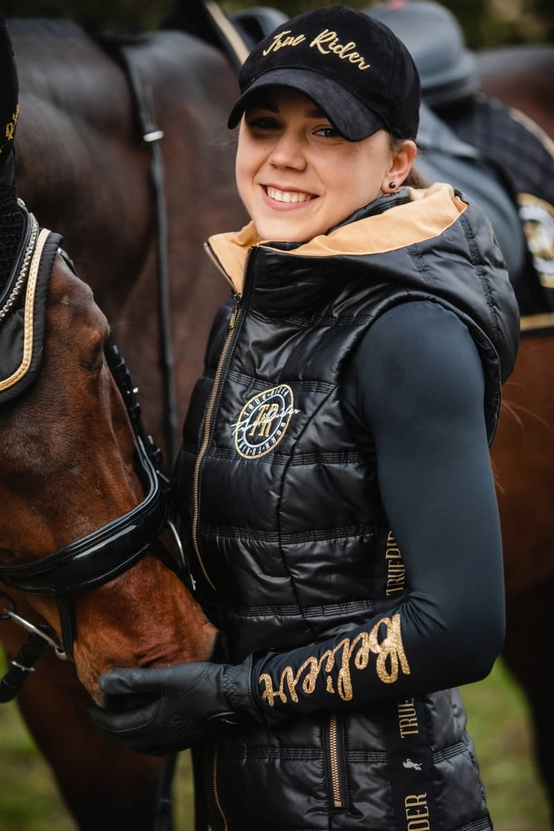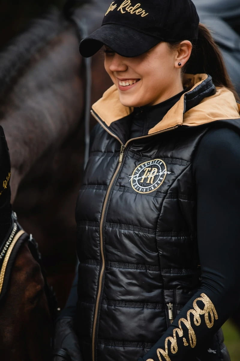 - Nietuzinkowe i rzucające się w oczy wykończenie kaptura oraz boków kamizelki szerokim lampasem Born to Ride, które nawiązuje do całej kolekcji. Możesz ją kupić w zestawie z legginsami w niższej cenie.