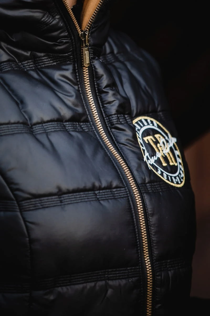 - Wysoki kołnierz – ma zastosowanie na każdą pogodę! Podczas cieplejszych dni można rozpiąć kamizelkę i elegancko wyeksponować kołnierz, a podczas chłodniejszych dni kołnierz zatrzymuje ciepło i chroni przed wiatrem
