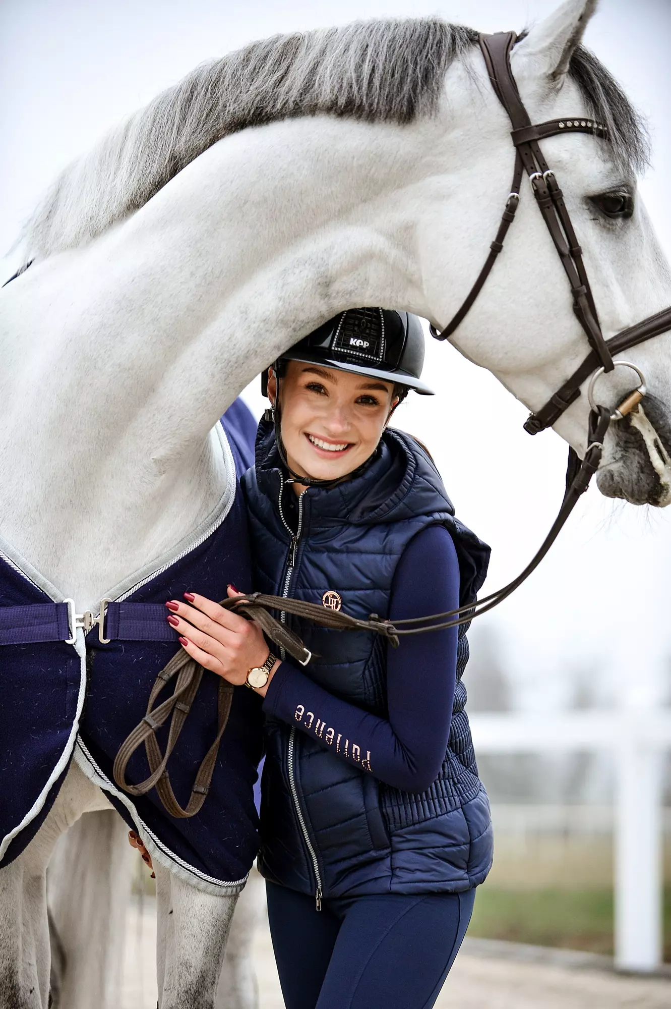 Wyjątkowo uniwersalna, jeździecka kamizelka dla prawdziwych koneserek elegancji. Idealna na sezon przejściowy - w zimniejsze dni, aby założyć na bluzy lub w cieplejsze - na koszulkę treningową!