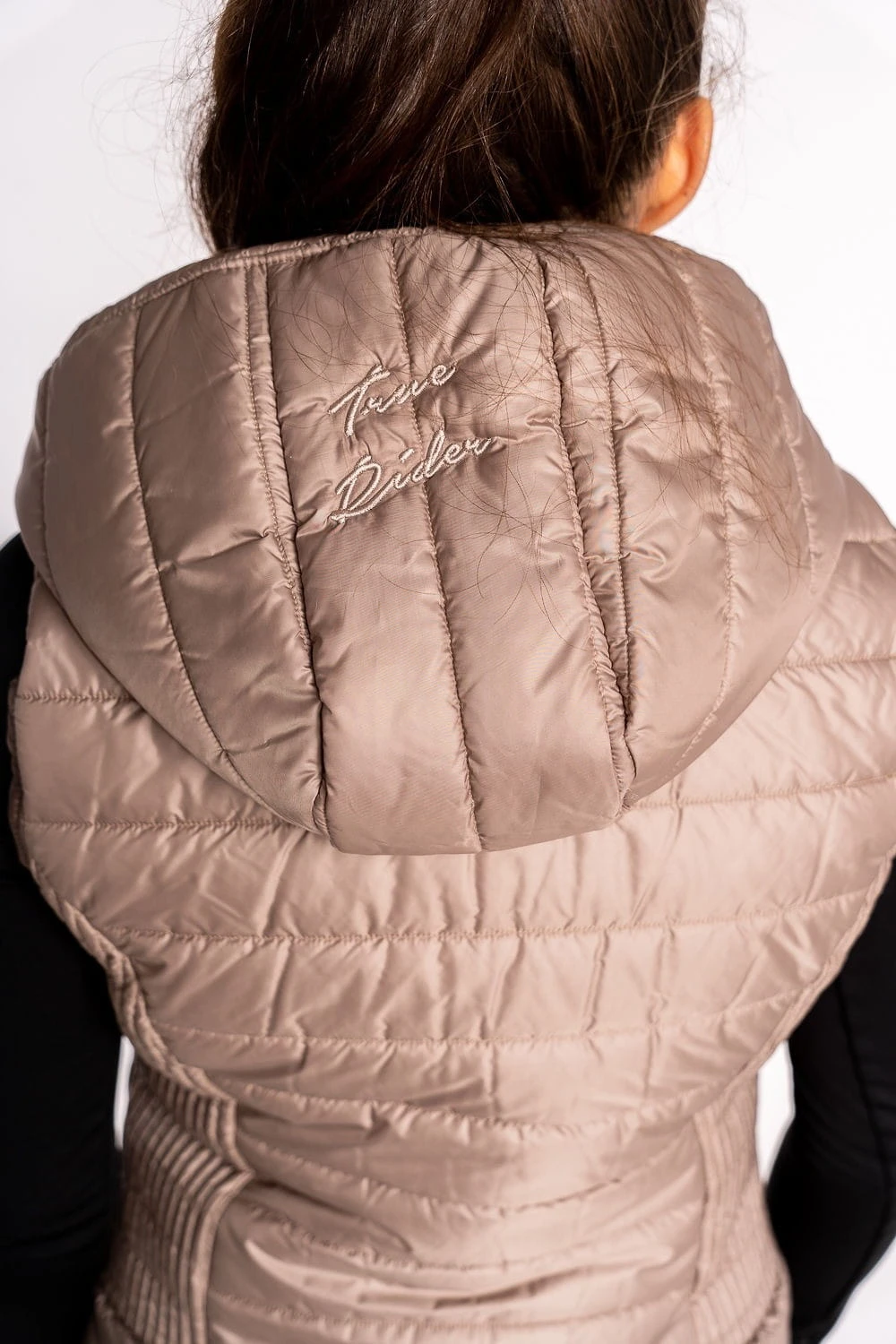 - Eleganckie wykończenie - kaptur zakończony wyjątkowym przeszyciem, zamki dopasowane do przepięknej, delikatnej blaszki z emblematem True Rider,