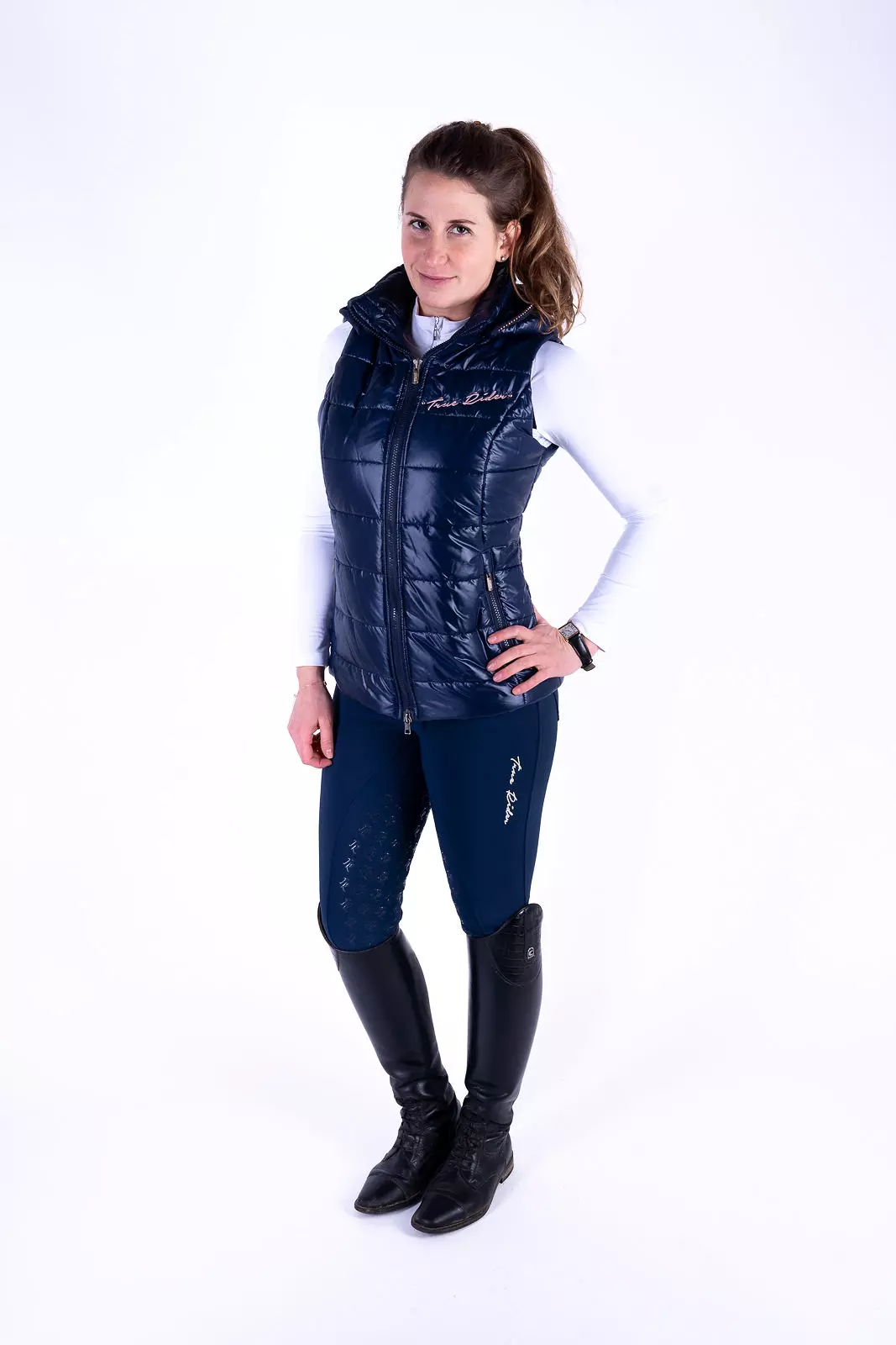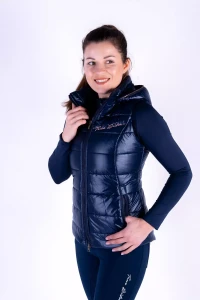 - Wysoki kołnierz – ma zastosowanie na każdą pogodę! Podczas cieplejszych dni można rozpiąć kamizelkę i elegancko wyeksponować kołnierz, a podczas chłodniejszych dni kołnierz zatrzymuje ciepło i chroni przed wiatrem