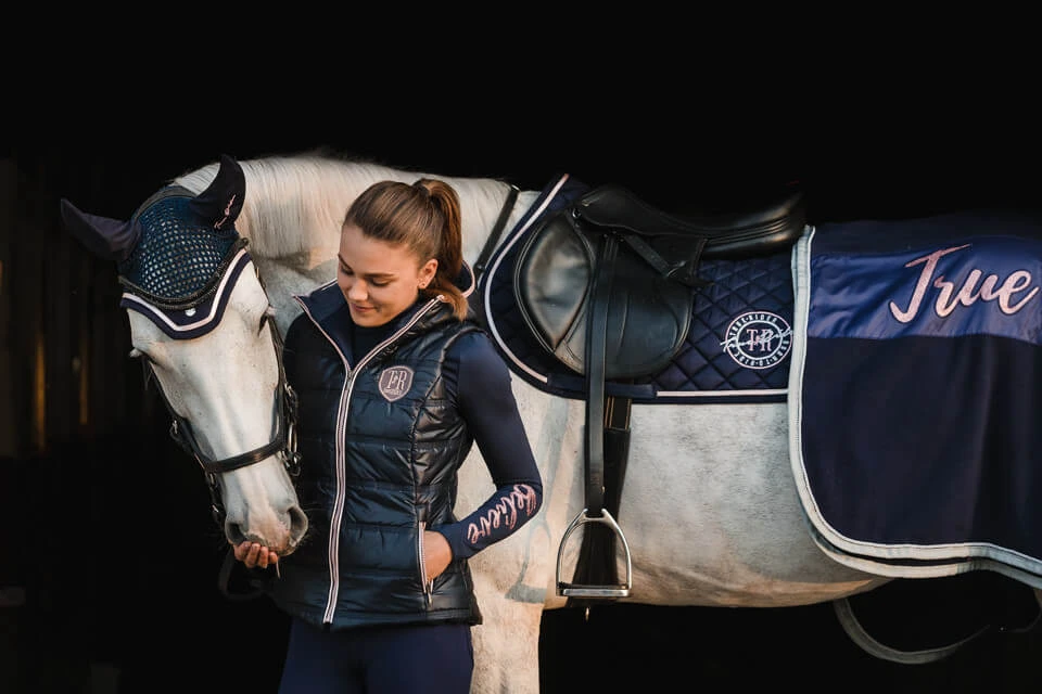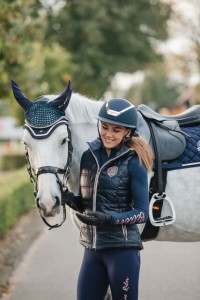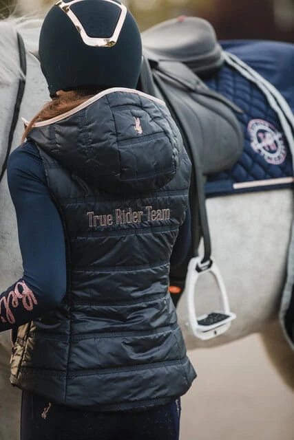 Są rzeczy, które dzięki odpowiedniemu krojowi oraz doborowi dodatków zmieniają się ze zwykłej kamizelki jeździeckiej w ulubioną. Kamizelka Rose Gold to połączenie klasycznego granatu z dodatkami w kolorze Rose Gold, czyli różowego złota. To również zapowiedź naszej nowej kolekcji z serii Rose Gold w której będziecie mogli kupić np. zimowe legginsy, koszulkę Thermo, czaprak, nauszniki, a nawet derkę!