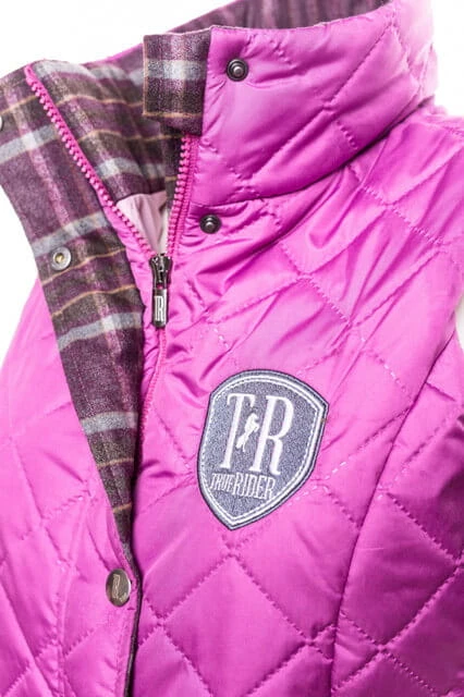 - Błyszczący materiał z dodatkiem flanelowej kraty – mimo modnego rodzaju materiału dodatek kraty idealnie komponuje się do całości i tworzy unikatowy model kamizelki na końskim rynku.