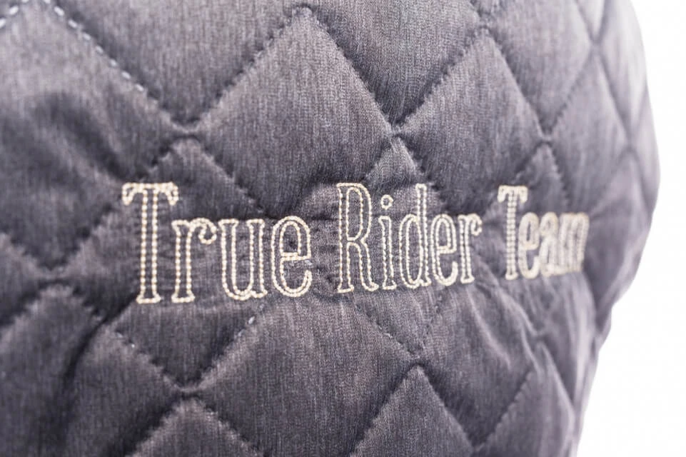 - Ozdobny haft na piersi z tarczą TR, haft z tyłu na karczku z koniec True Rider i ciekawy haft True Rider Team - tak żeby każdy kto Cię widzi wiedział z kim się utożsamiasz ;)