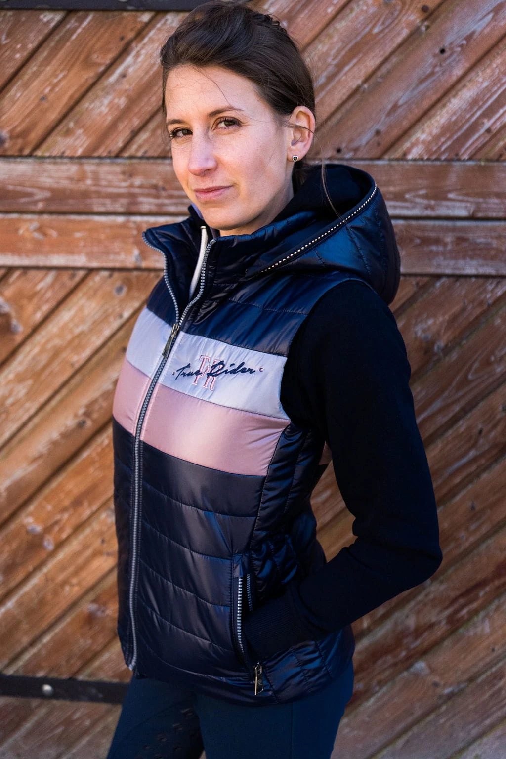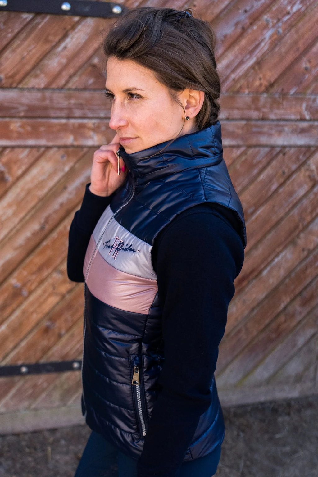 Są rzeczy, które dzięki odpowiedniemu krojowi oraz doborowi dodatków zmieniają się ze zwykłej kamizelki jeździeckiej w ulubioną. Kamizelka Tri Color Rose Gold to połączenie klasycznego granatu, który dominuje w tej kamizelce oraz srebra i różowego złota w postaci dwóch pasów znajdujących się na piersi.