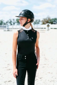 - Opcja bez rękawów świetnie sprawdza się dla ujeżdżeniowców podczas upalnych startów.