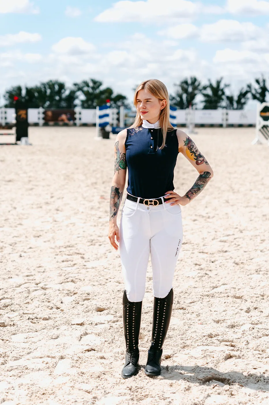 - Opcja bez rękawów świetnie sprawdza się dla ujeżdżeniowców podczas upalnych startów.