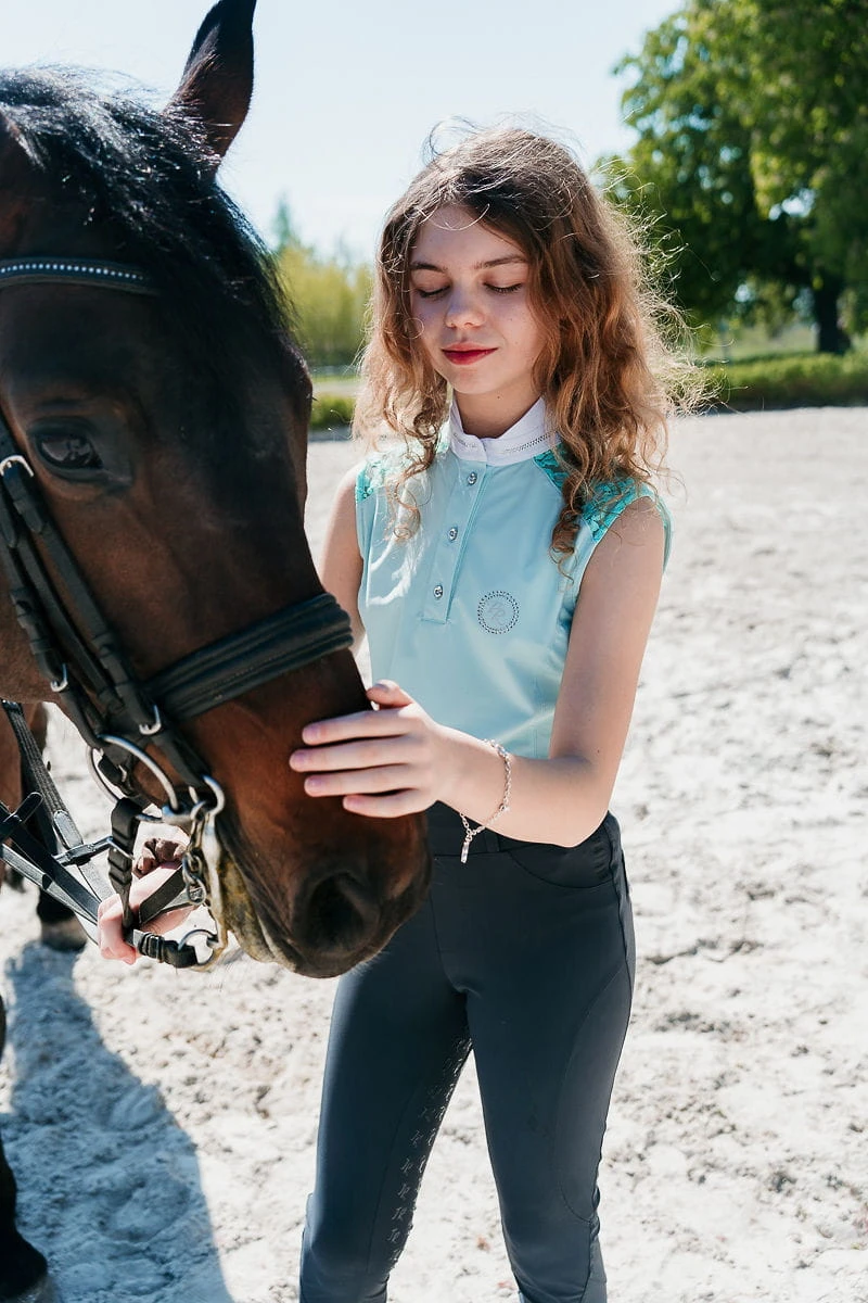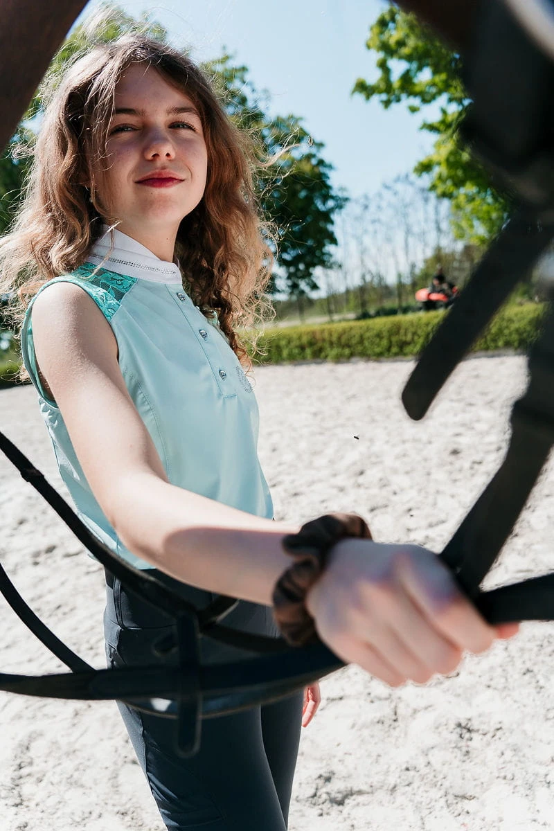- Opcja bez rękawów świetnie sprawdza się dla ujeżdżeniowców podczas upalnych startów.
