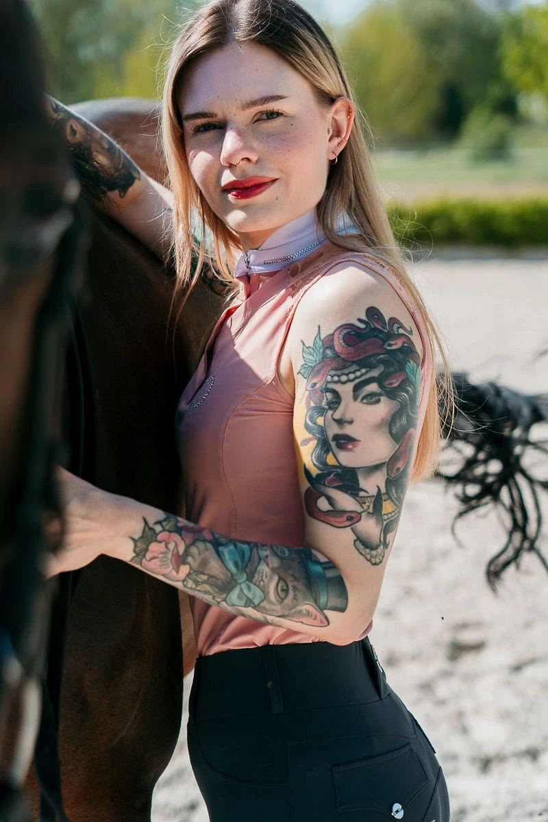 - Opcja bez rękawów świetnie sprawdza się dla ujeżdżeniowców podczas upalnych startów.