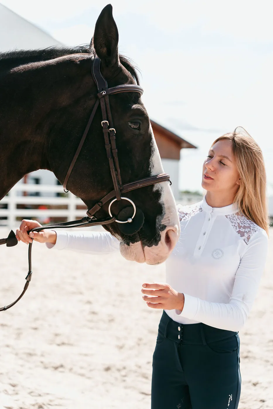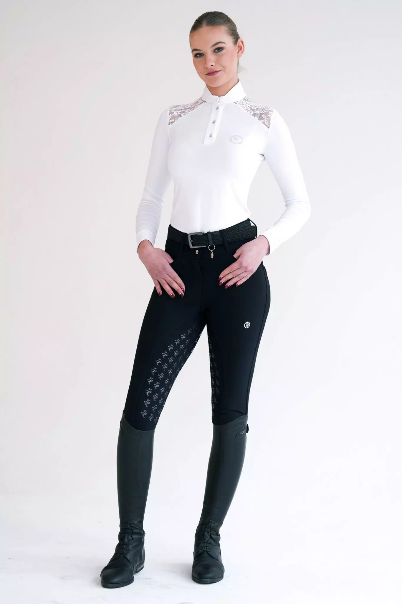 - Koszula konkursowa z koronką posiada białą stójkę i mankiety zgodnie z wymogami FEI