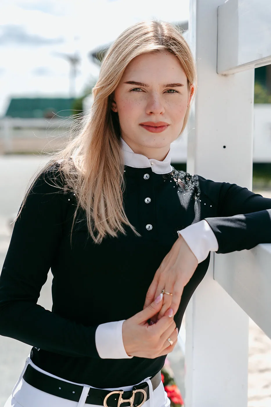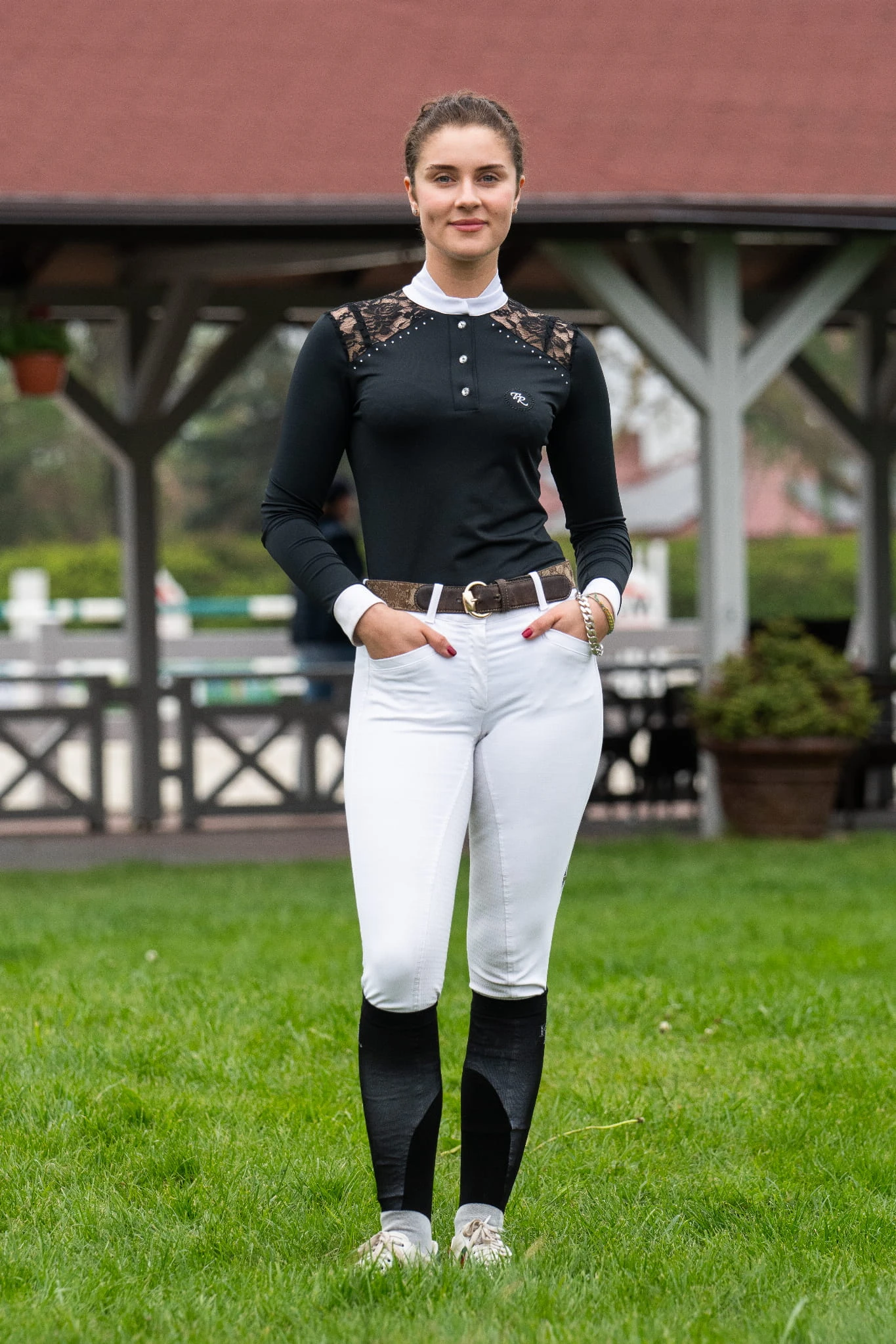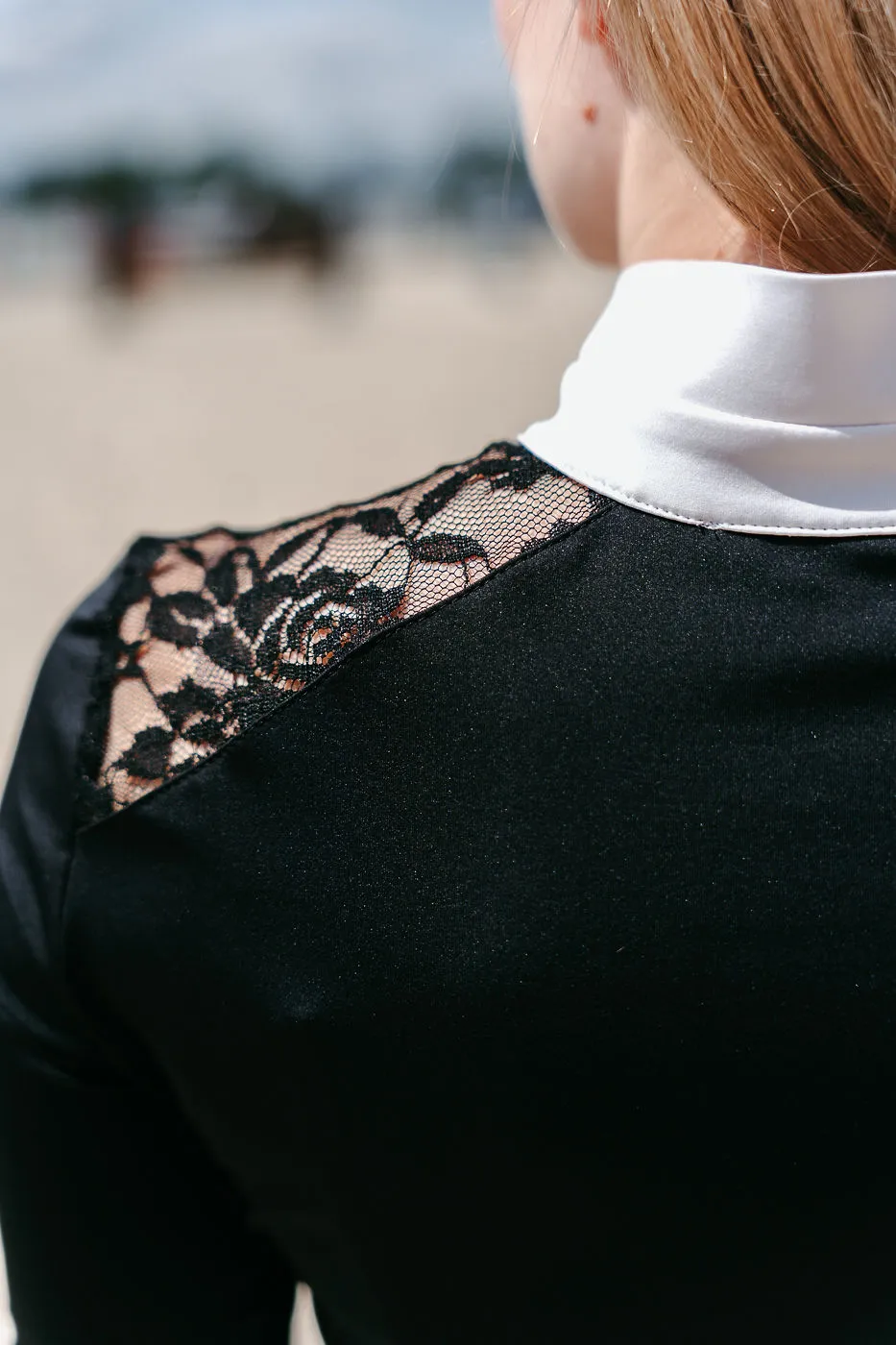 - Koszula konkursowa z koronką posiada białą stójkę i mankiety zgodnie z wymogami FEI