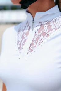 - Koszula konkursowa z koronką posiada białą stójkę i mankiety zgodnie z wymogami FEI