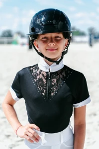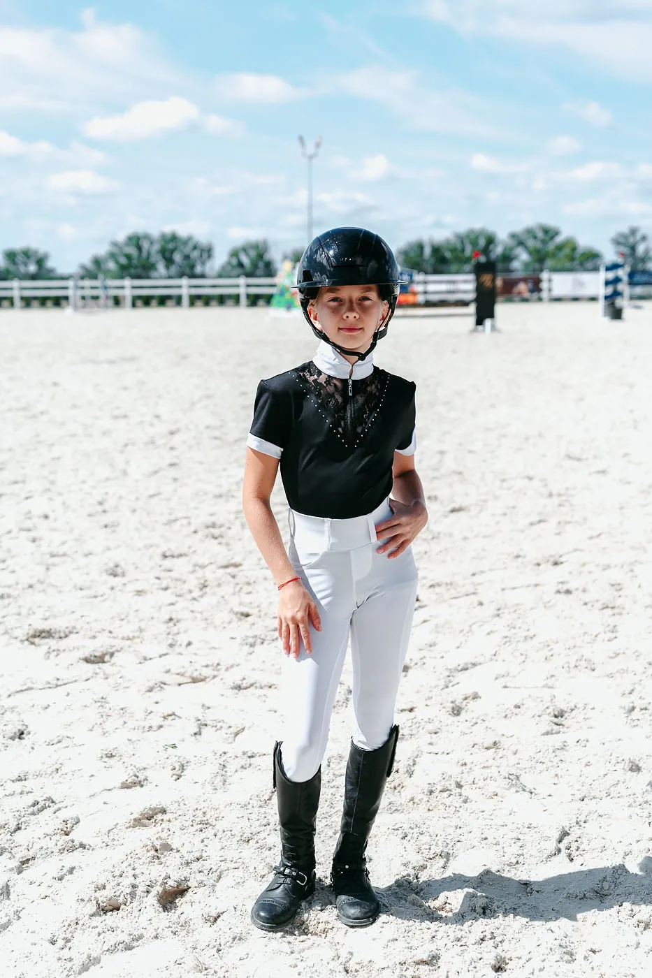 - Koszula konkursowa z koronką posiada białą stójkę i mankiety zgodnie z wymogami FEI