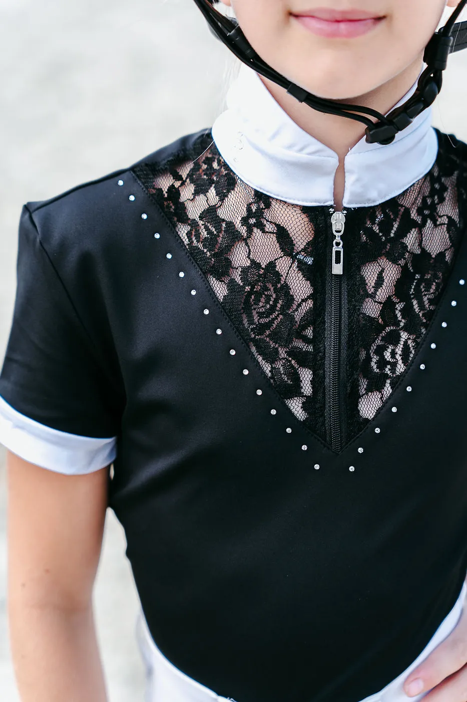 Koszula Konkursowa z Koronką Viki Czarna KIDS