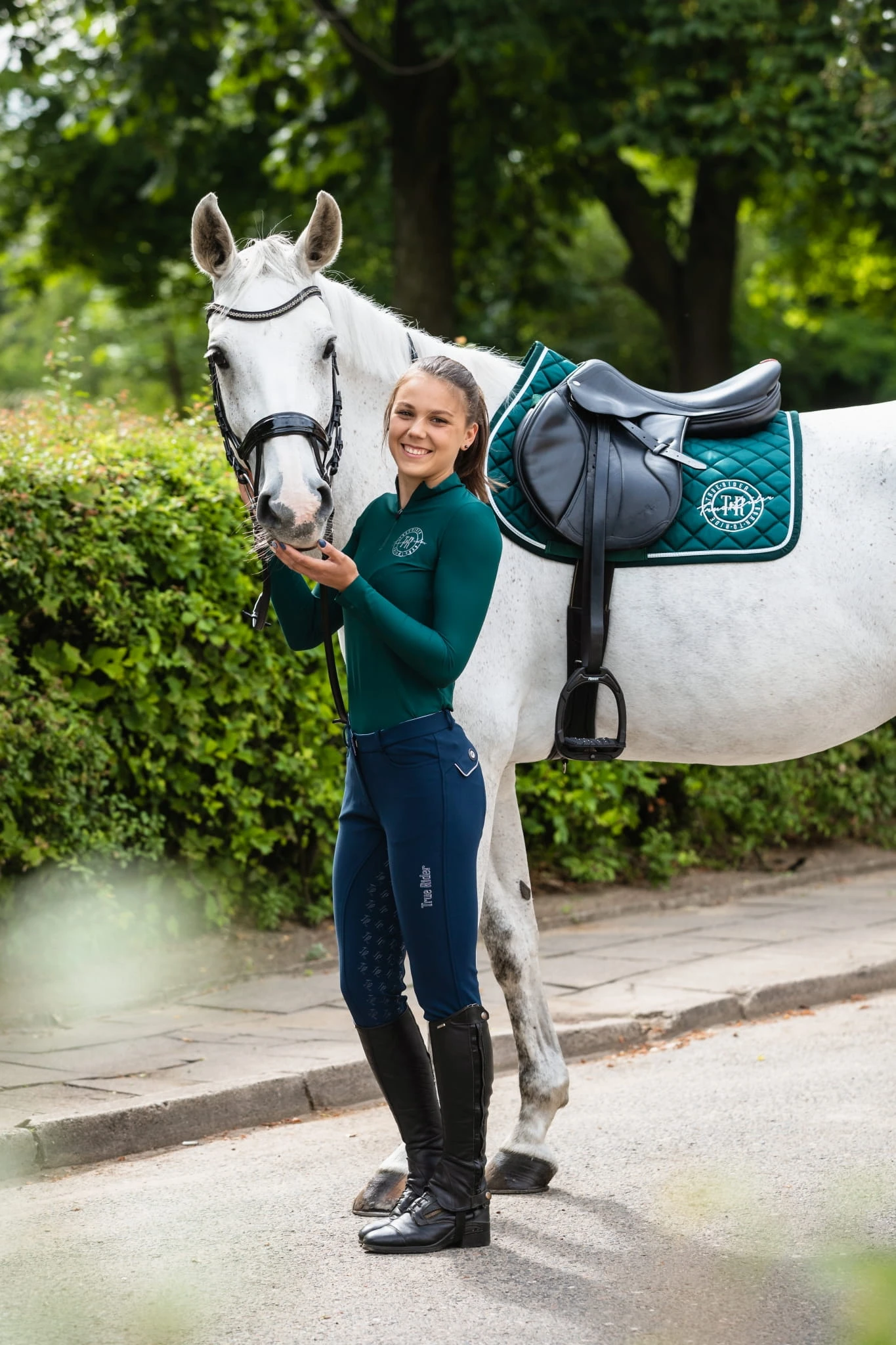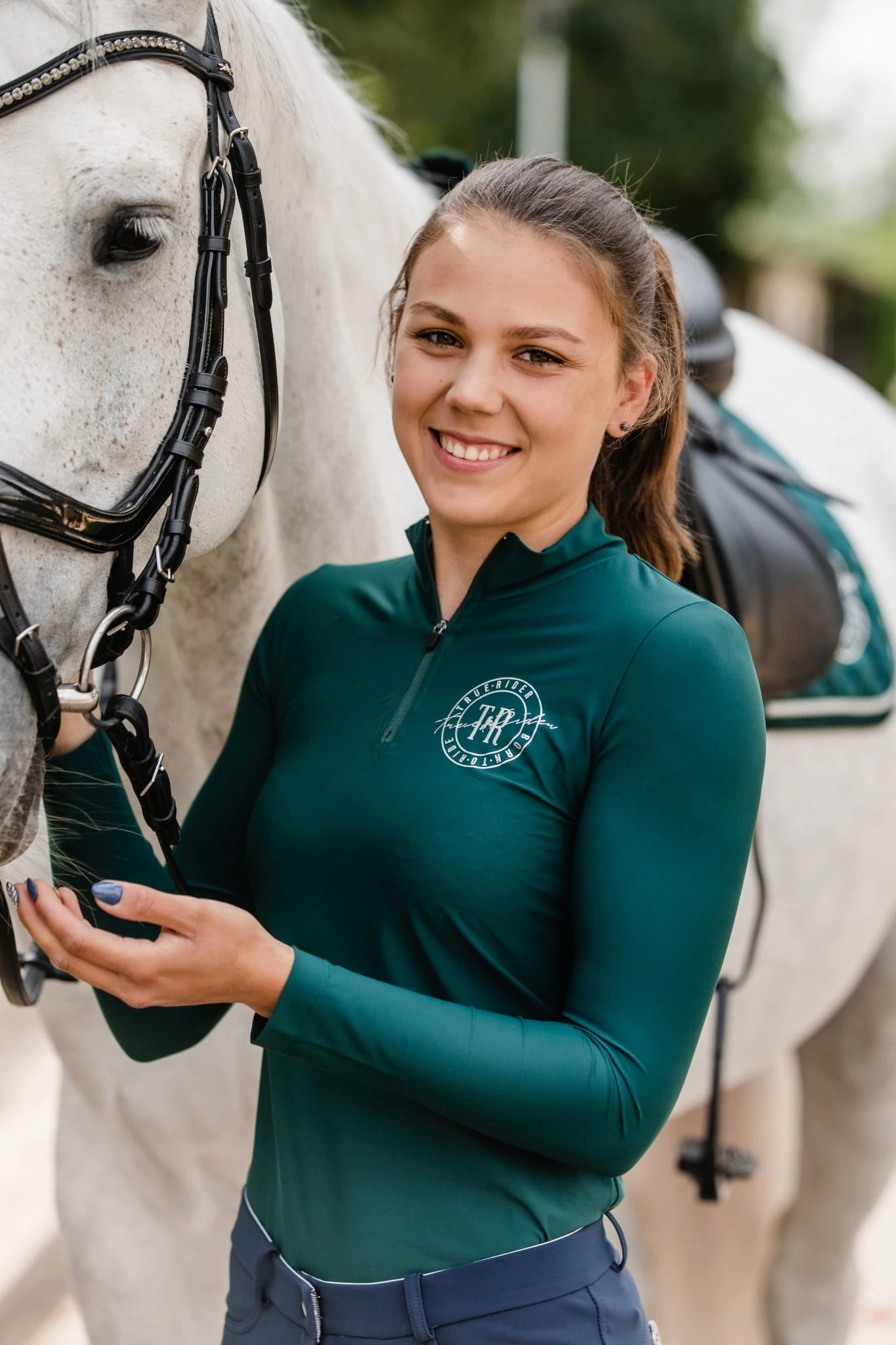 - Koszulka Born to Ride w kolorze Bottle Green to kapitalne połączenie z legginsami Marta Bottle Green, w tym kolorze znajdziesz również nauszniki oraz czaprak dla swego rumaka!