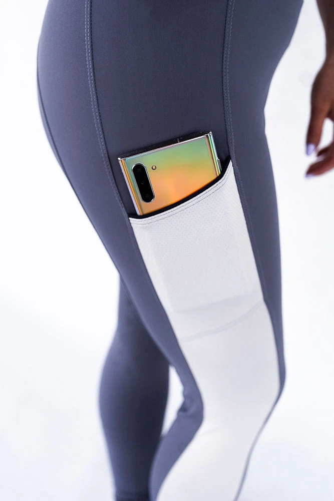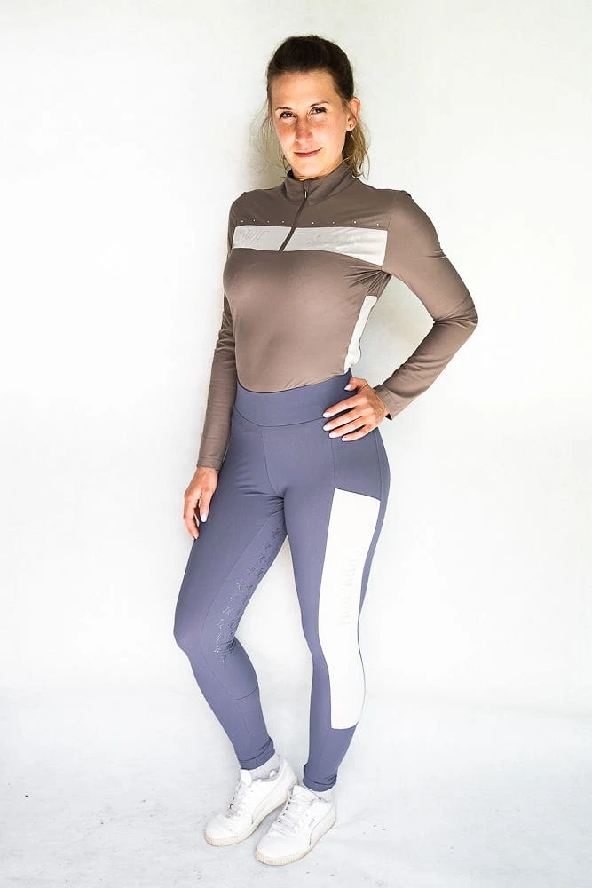 - Praktyczna, bezszwowa kieszeń z boku lewej nogi, która jest idealna na telefon, klucze i końskie smaczki