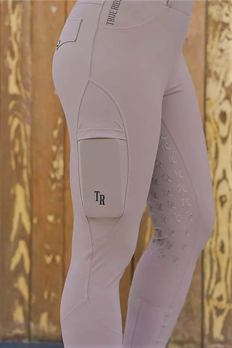 - NOWOŚĆ: praktyczna, zamykana od góry dodatkowym materiałem kieszeń na telefon z boku lewej nogi, która jest idealna na telefon, klucze i końskie smaczki