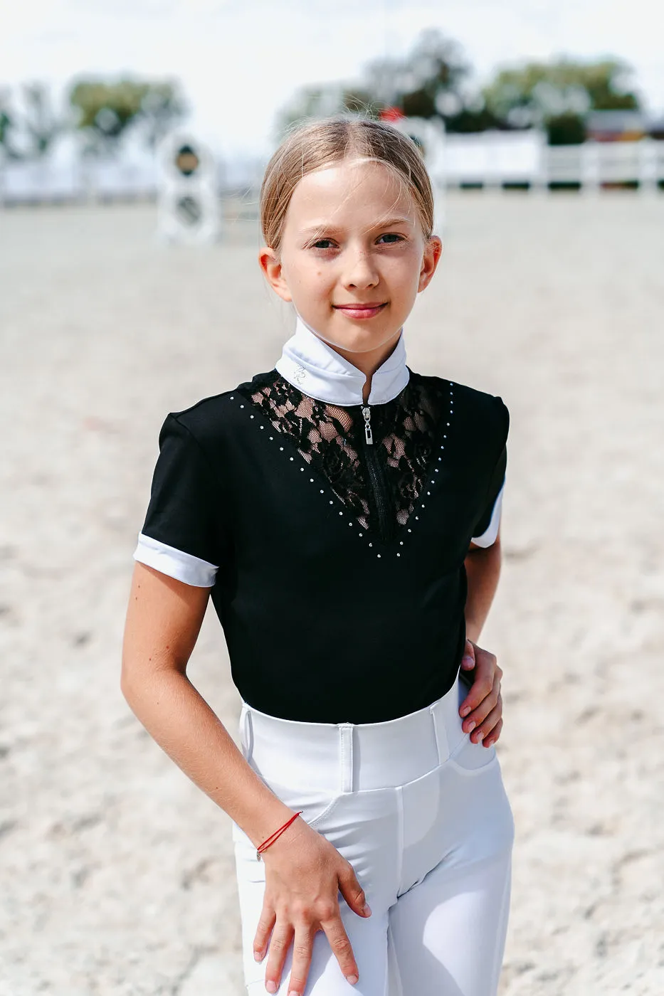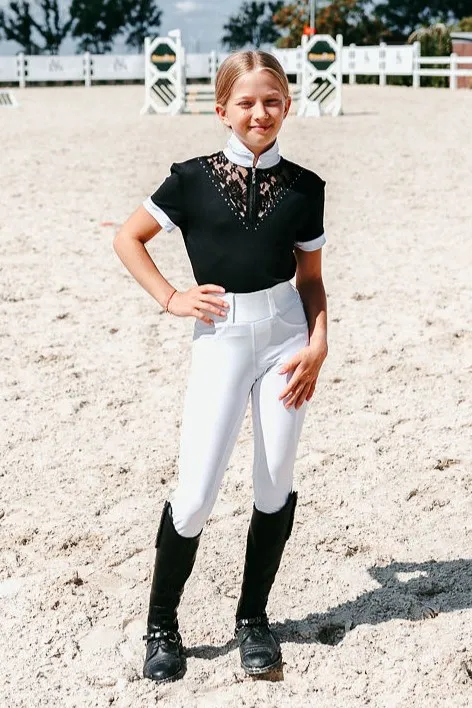 Konkursowe legginsy Marta wykonane ze szczególnie elastycznej, najwyższej jakości tkaniny, która idealnie dopasuje się do kształtów Twojej sylwetki. Posiadają wysoki stan, który idealnie dopasuje się do twojej sylwetki, nie ograniczając jednocześnie ruchów w siodle. Idealnie rozwiązanie dla amazonek ceniących sobie świetny wygląd i elegancję w połączeniu z maksymalnym komfortem.
