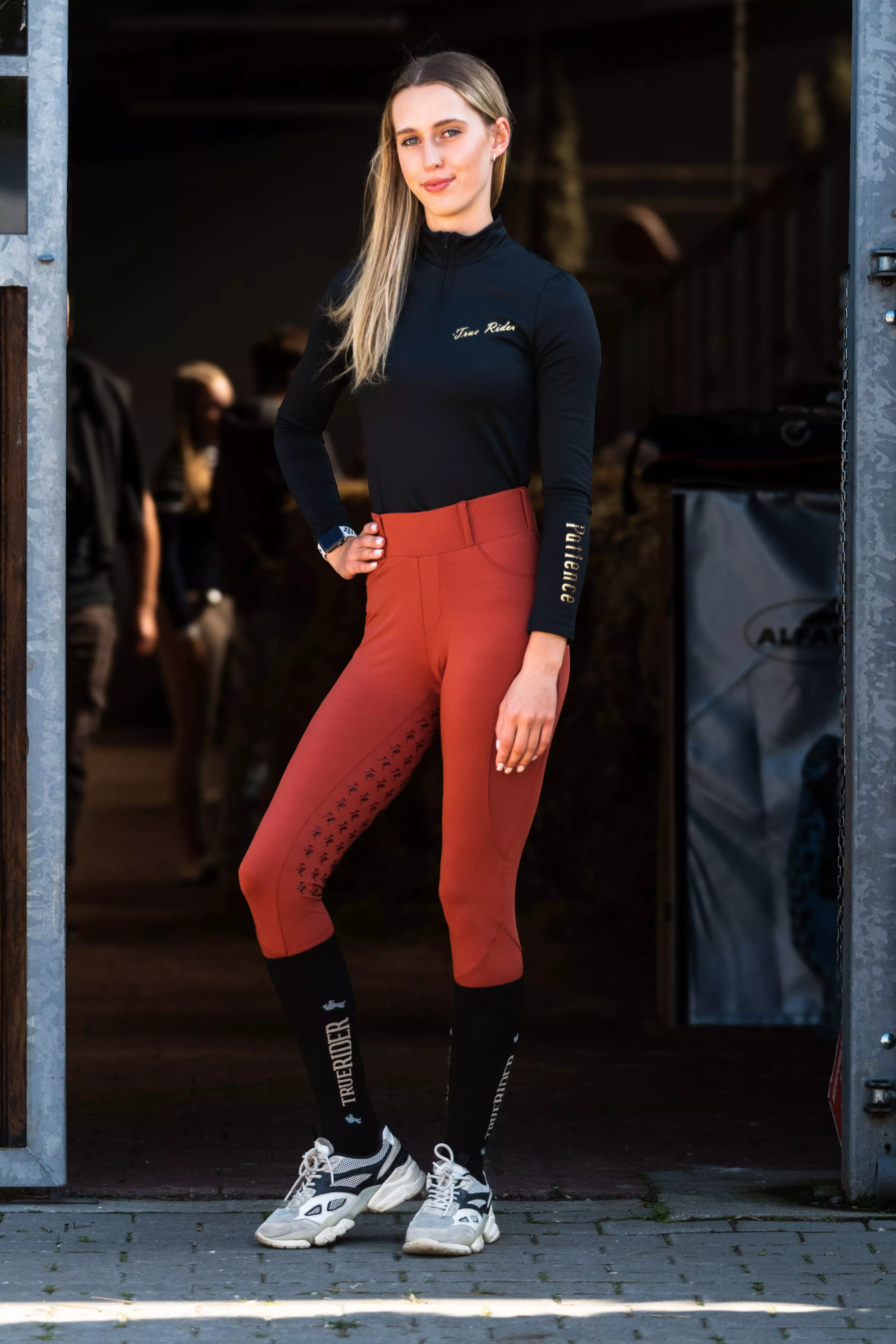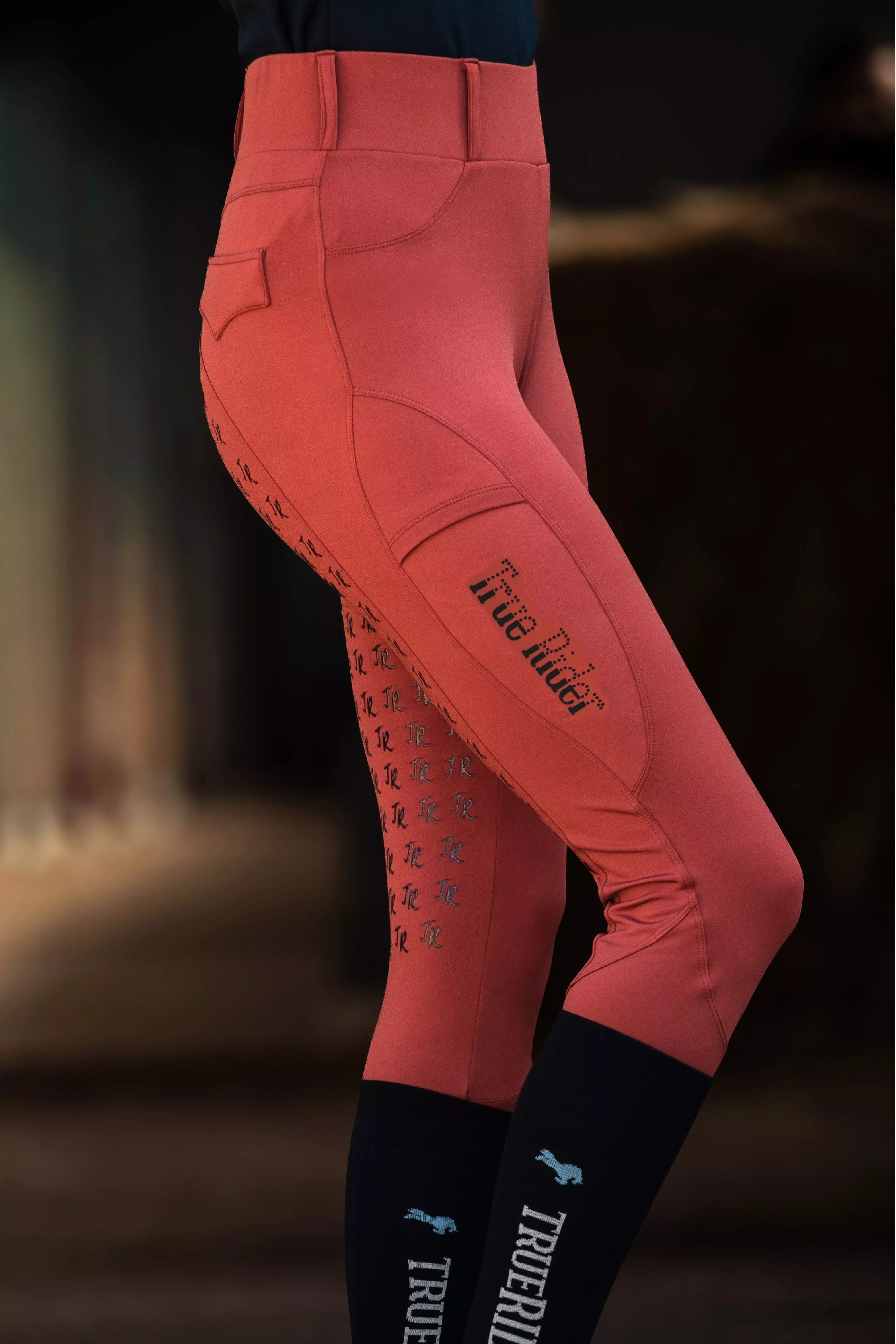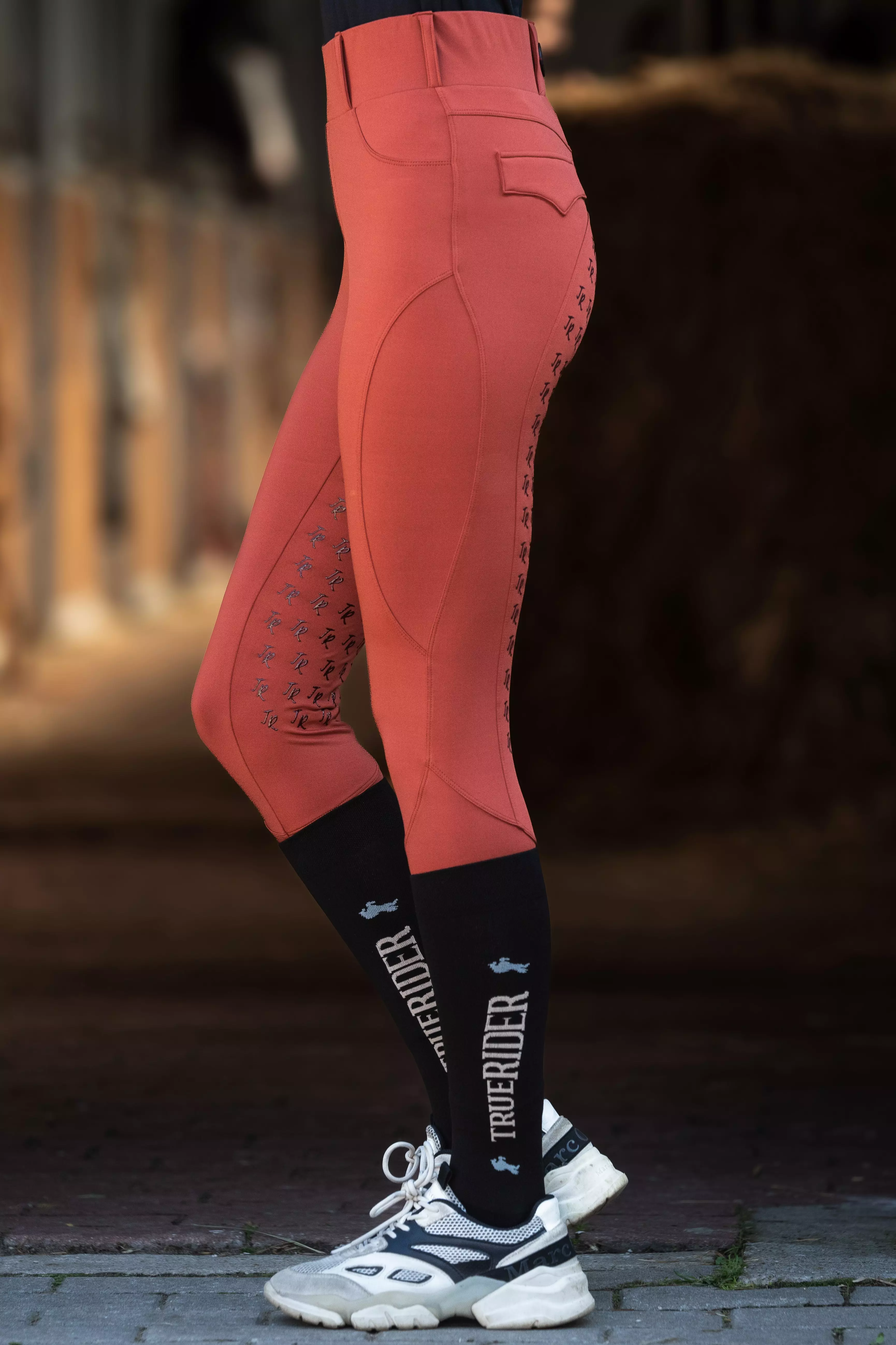 - Wykonane z grubszego, ale wygodne i elastycznego materiału z efektem termicznym, który zapewnia komfort i ciepło podczas jazdy konnej i innych aktywności w stajni