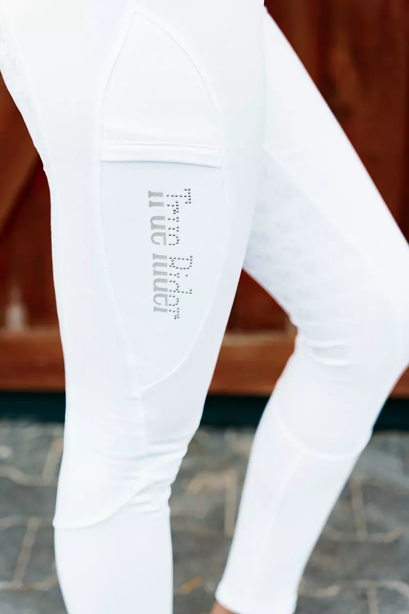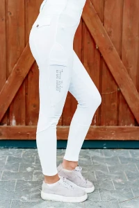 - Konkursowa wersja zimowych legginsów w kolorze białym - koniec marznięcia na zawodach halowych! Wykonane z grubszego, ale wygodne i elastycznego materiału z efektem termicznym, który zapewnia komfort i ciepło podczas jazdy konnej i innych aktywności w stajni
