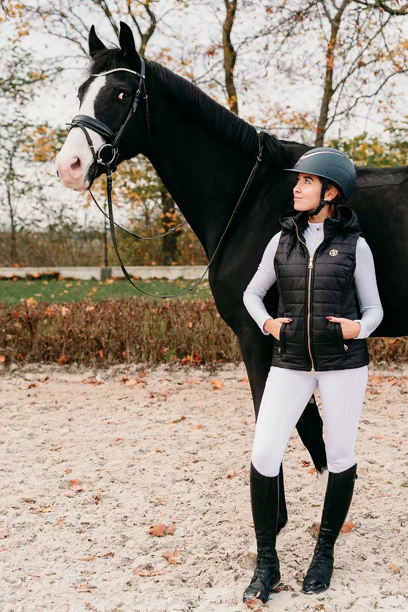 - Wykonane z grubszego, ale wygodne i elastycznego materiału z efektem termicznym, który zapewnia komfort i ciepło podczas jazdy konnej i innych aktywności w stajni