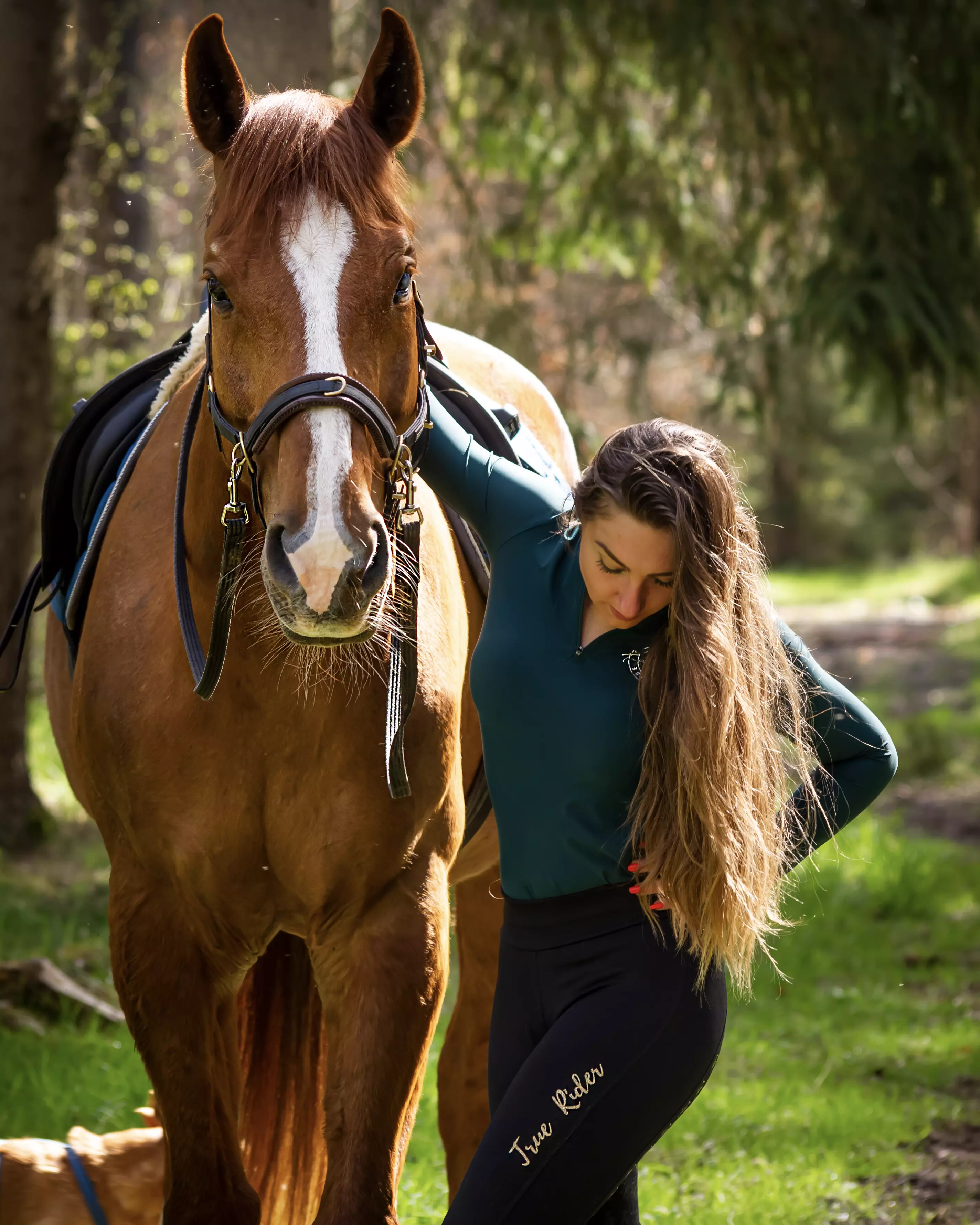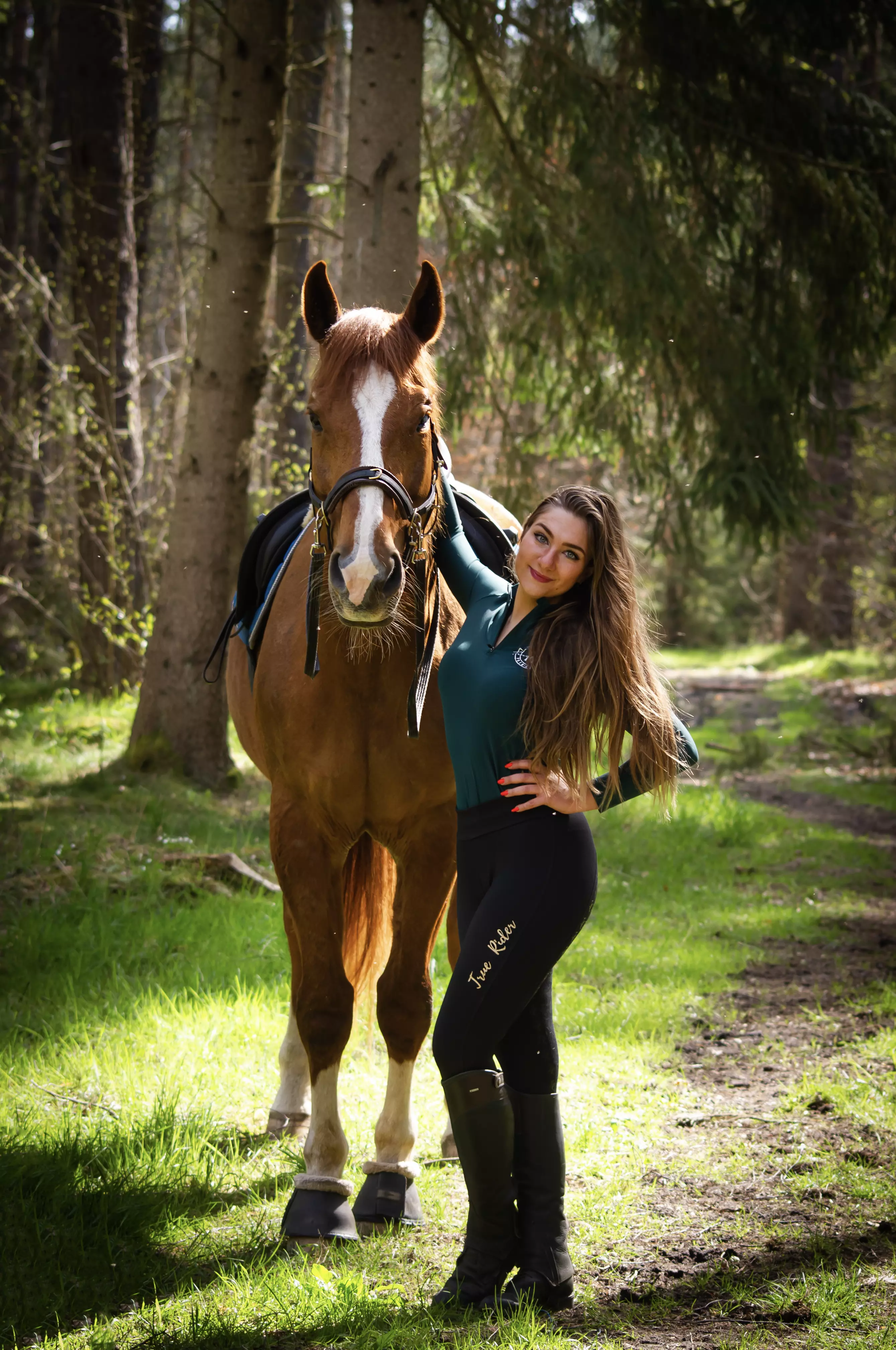 - Aby dodać elegancji i sprawić byś się wyróżniała dodaliśmy brokatowy napis True Rider na udzie.