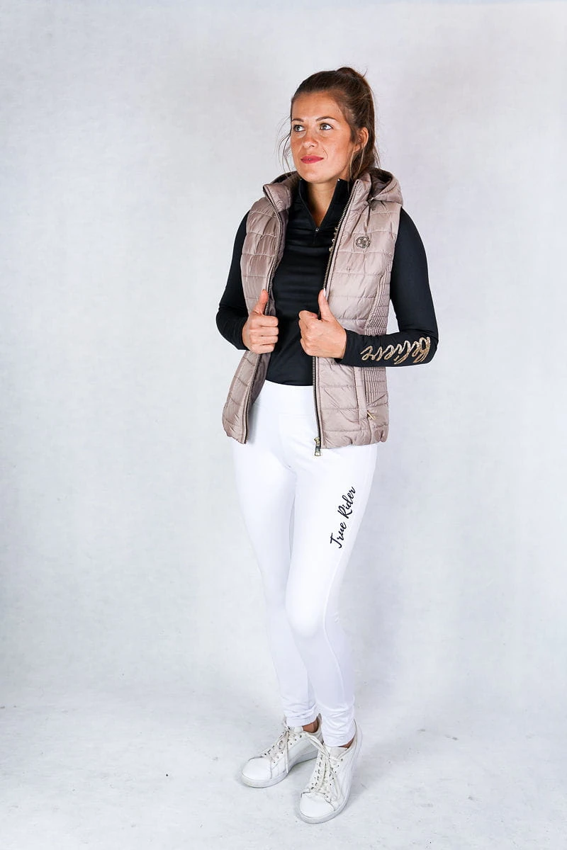 - Aby dodać elegancji i sprawić byś się wyróżniała dodaliśmy brokatowy, kontrastowy napis True Rider na udzie