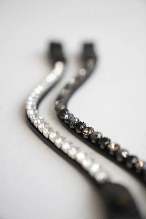 - Niezwykle efektowny, opadający naczółek, wysadzany przepięknie mieniącymi się kryształkami.