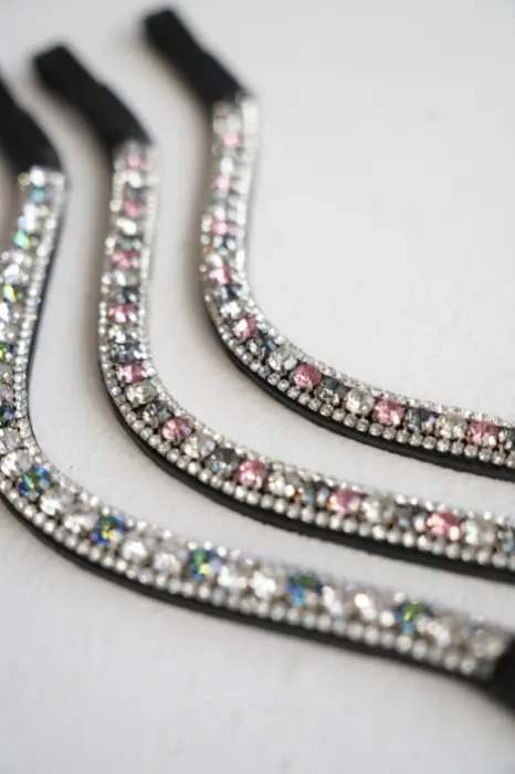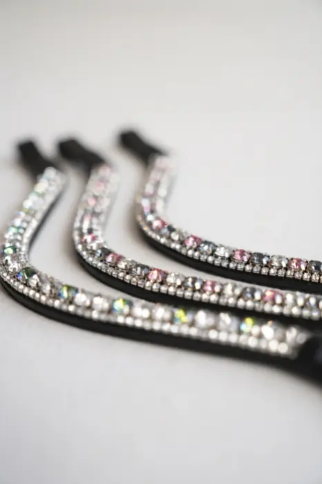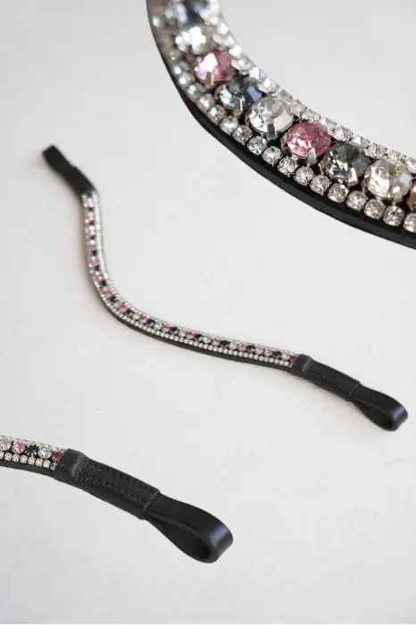 - Niezwykle efektowny, opadający naczółek, wysadzany przepięknie mieniącymi się kryształkami.