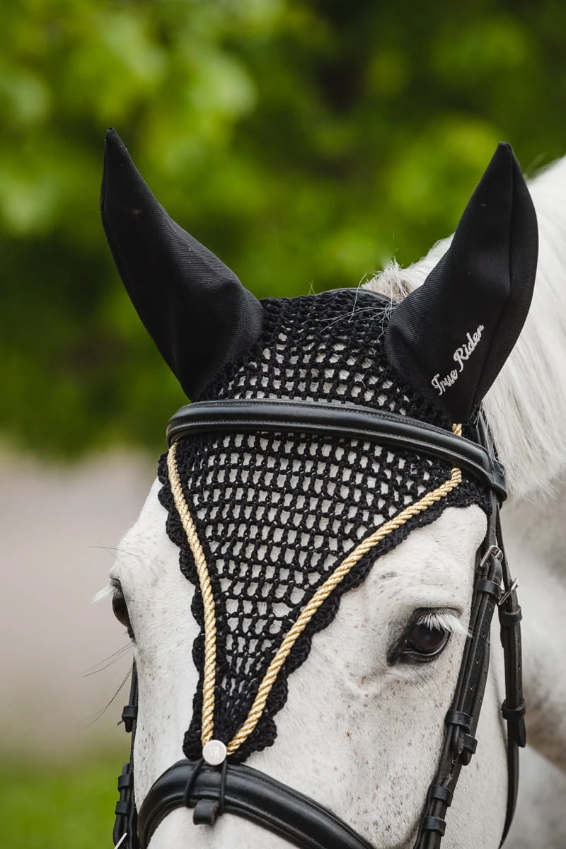W True Rider chcemy zapewnić komfort Waszym podopiecznym, szczególnie wrażliwcom, którzy nie cierpią owadów lub wszelkich hałasów. Na ich dostojnych głowach nauszniki True Rider będą się znakomicie prezentować. Estetyczny krój sprawia, że stanowią one nie tylko skuteczną ochronę uszu, ale są także eleganckim dodatkiem dodatkiem do sprzętu jeździeckiego i Waszego ubioru – istnieje możliwość nabycia pasującego czapraka, kamizelki oraz również legginsów ;)