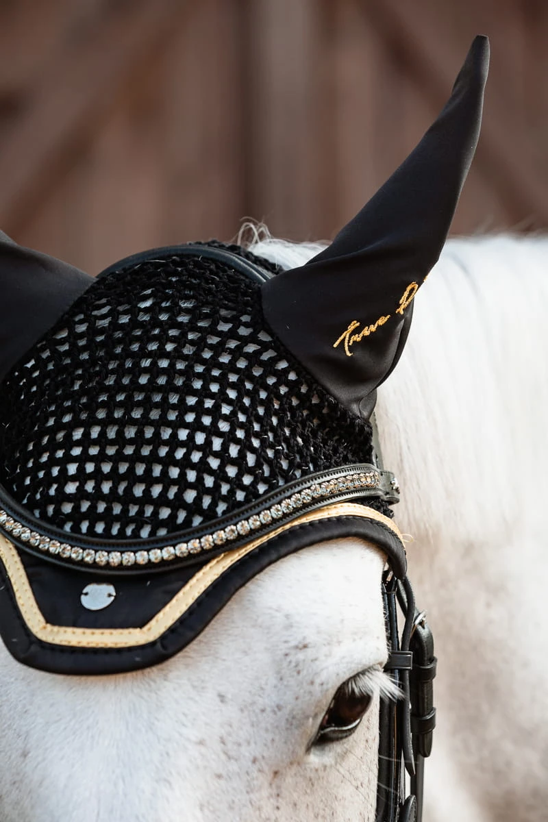 Głęboka czerń pasuje do każdej maści naszych podopiecznych. Cudowne połączenie czerni z kontrastową, skórką w kolorze złota - nawiązanie do kolekcji Black & Gold – elegancja w każdym calu dla jeźdźców, którzy lubią ponadczasową klasykę.