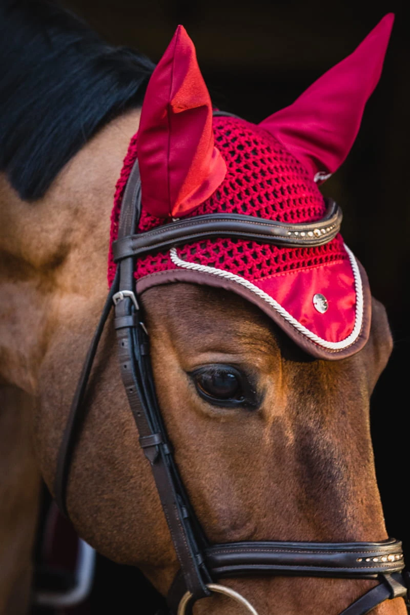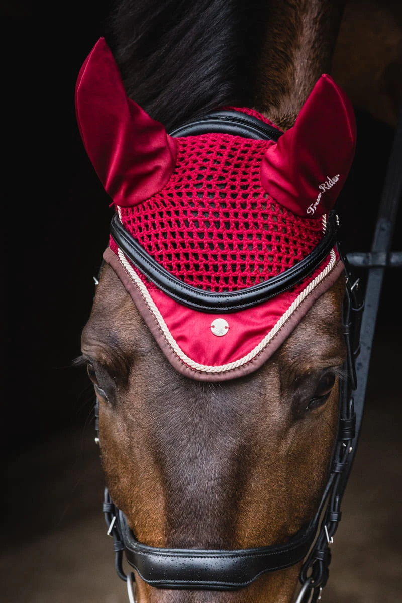 Nasze bordowe nauszniki Sparkle świetnie pasuje do koni o ciemnej maści, ale niczego nie brakuje mu również na kasztanach. Mówi się, że kolor bordowy charakteryzuje osoby żądne przygód, ciekawych świata i ludzi chętnych nowości. Mamy nadzieję, że Bordowy Sparkle będzie Ci towarzyszył w różnych końskich przygodach.