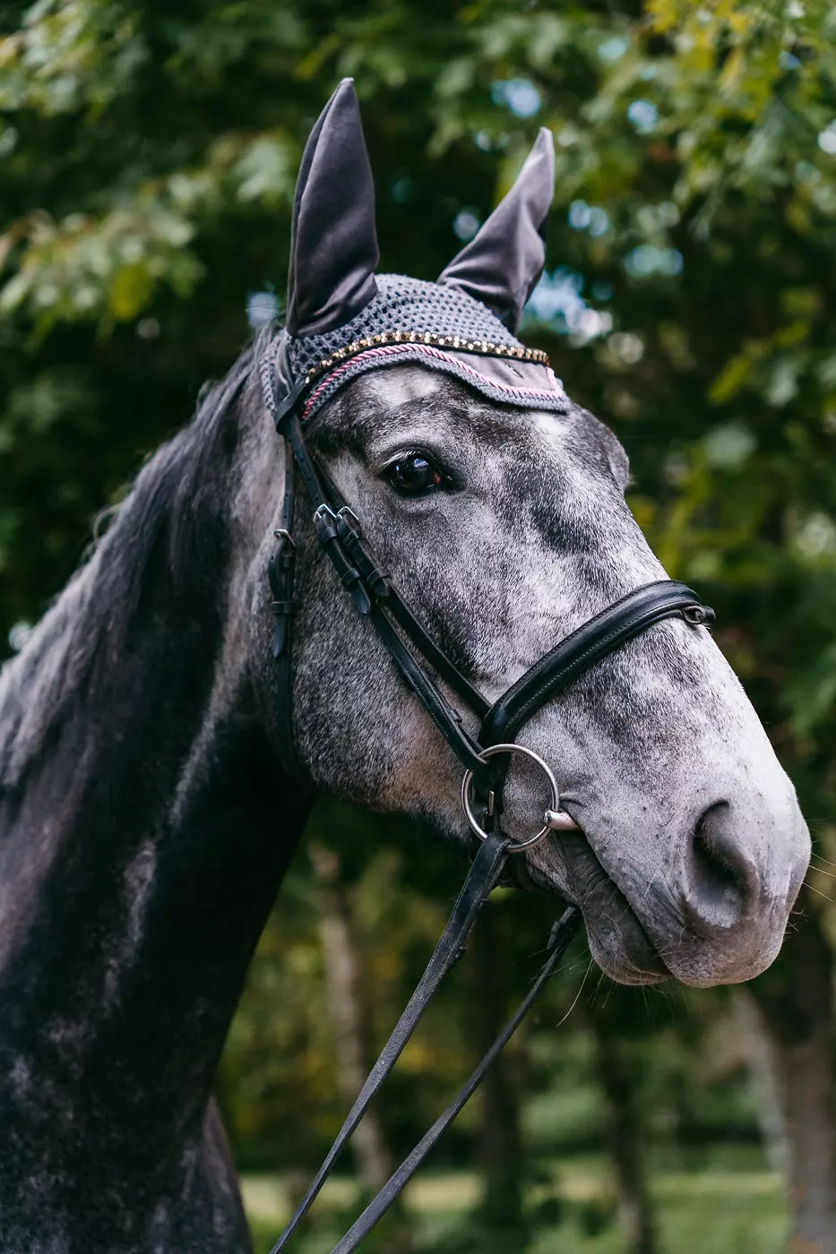 - Wyróżniający się, elegancki kształt nauszników - anatomiczny kształt zapewnia większy komfort dla konia.