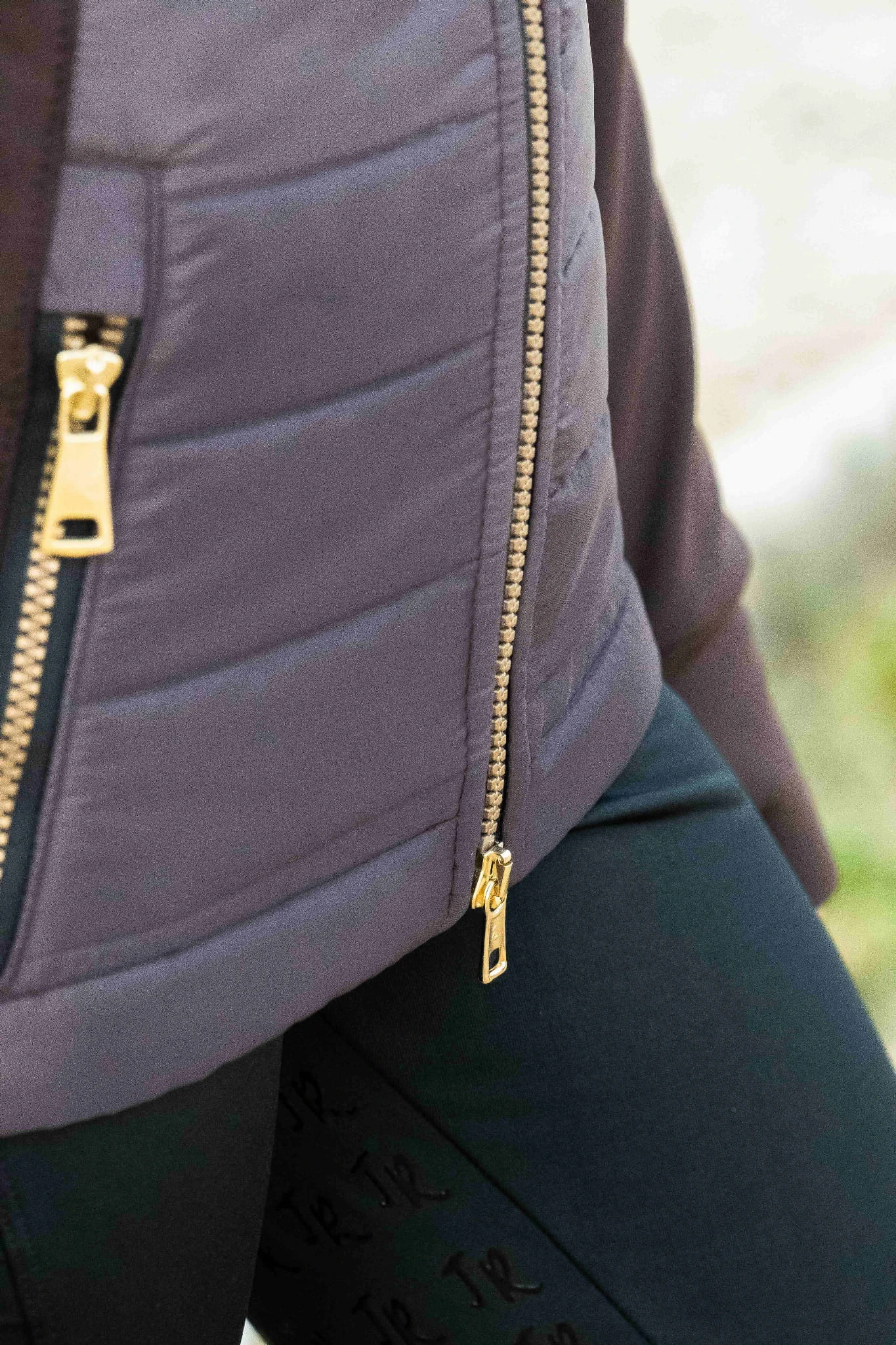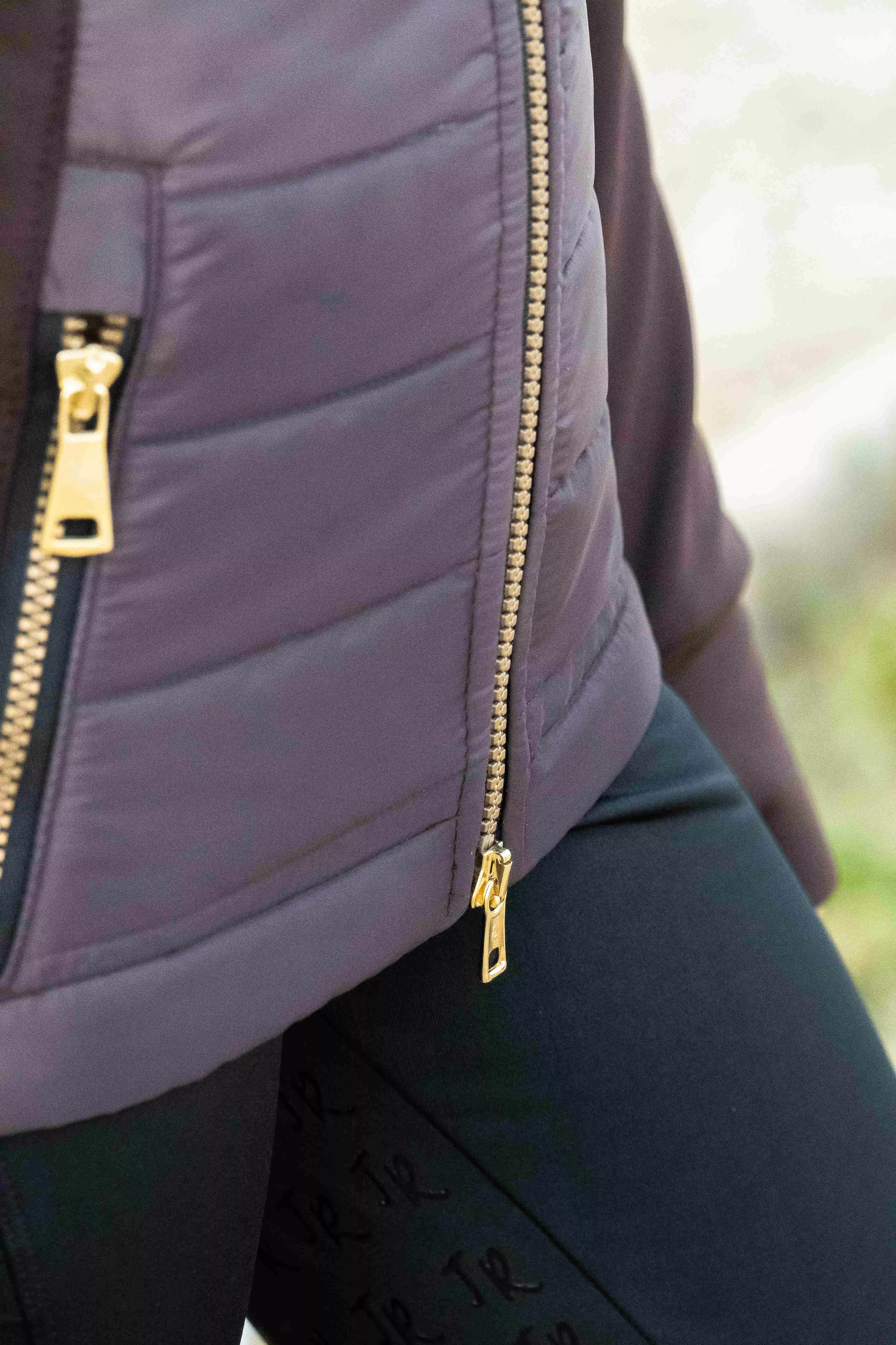 - Przód i tył wykonany z błyszczącej wytrzymałej tkaniny z lekką ociepliną, która zatrzymuje ciepło, jednocześnie dając pełną swobodę podczas aktywności