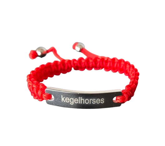 Wykonana z trwałego, czerwonego sznurka, który od wieków symbolizuje ochronę, siłę i powodzenie, ozdobiona jest stalową blaszką z grawerem kegelhorses. To nie tylko modny dodatek, ale też amulet przynoszący szczęście i dobrą energię – idealny dla każdego, kto żyje w rytmie końskich kopyt.