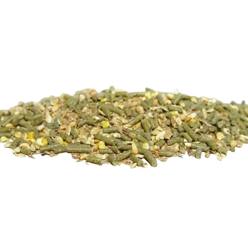 Pellet z lucerny, płatki jęczmienne, melasa buraczana, węglan wapnia, suszona marchew, kozieradka, fruktooligosacharydy, płatki bobu, suszony por, siemię lniane, owies, chlorek potasu, białko ziemniaczane, dmuchany jęczmień, kukurydza dmuchana, chlorek sodu, mączka sojowa, prażone ziarna soi, otręby pszenne, śruta pszenna.