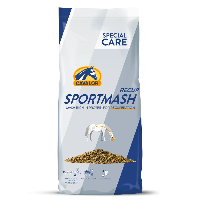 Cavalor Sportmash Recup to specjalistyczny mesz zbożowy dla koni sportowych, przeznaczony do podawania po intensywnym treningu, zawodach lub długim wysiłku fizycznym. Jego receptura została opracowana z myślą o szybkiej regeneracji mięśni, uzupełnieniu strat elektrolitowych oraz wsparciu układu pokarmowego po pracy.