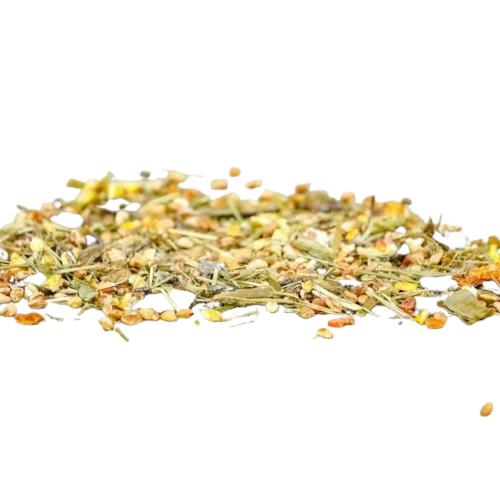 wysłodki buraczane, lucerna, trawa timothy, łuski soi, siemię lniane, drożdże piwne, olej roślinny, węglan wapnia, sól, fosforan wapnia, minerały, witaminy, przeciwutleniacze (naturalne tokoferole)