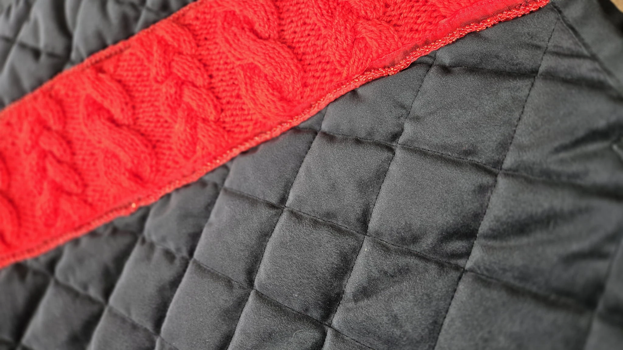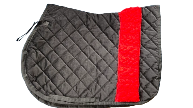Ozdobą czapraka jest wszyty po jednej stronie czerwony warkocz z koralikami, który został ręcznie robiony na drutach – dzięki temu każdy egzemplarz jest unikatowy i stanowi element prawdziwie limitowanej kolekcji. To nie tylko praktyczny element wyposażenia stajni, ale także efektowny dodatek, który podkreśla indywidualny styl jeźdźca.
