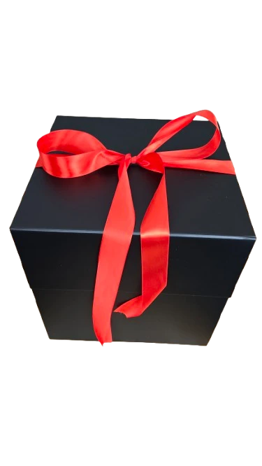 Całość zapakowana w stylowe pudełko zamykane na magnes, ozdobione efektowną czerwoną kokardą. Wymiary boxa 30 x 30 x 30 cm pozwoliły zmieścić aż 18 osobnych pudełek niespodzianek.
