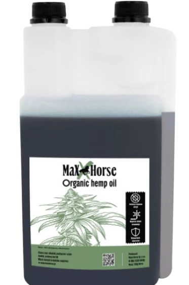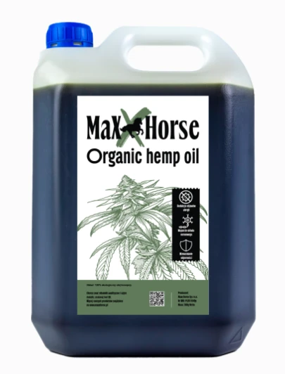 MaxxHorse Organic Hemp Oil – ekologiczny olej konopny dla koni wspierający odporność, układ nerwowy i zdrową skórę | Suplementy MaxxHorse